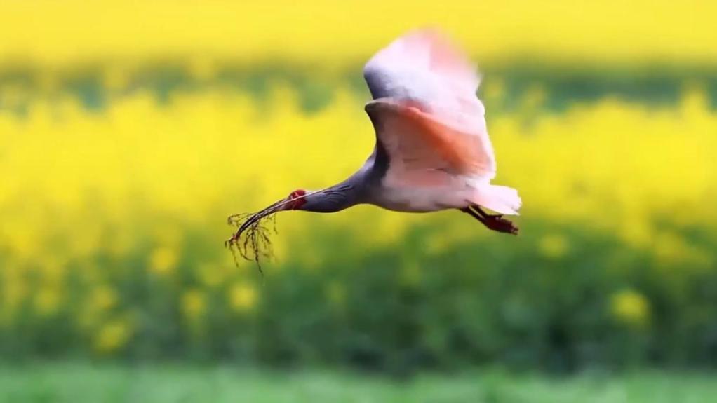 陕西洋县:朱鹮花海衔枝觅良缘