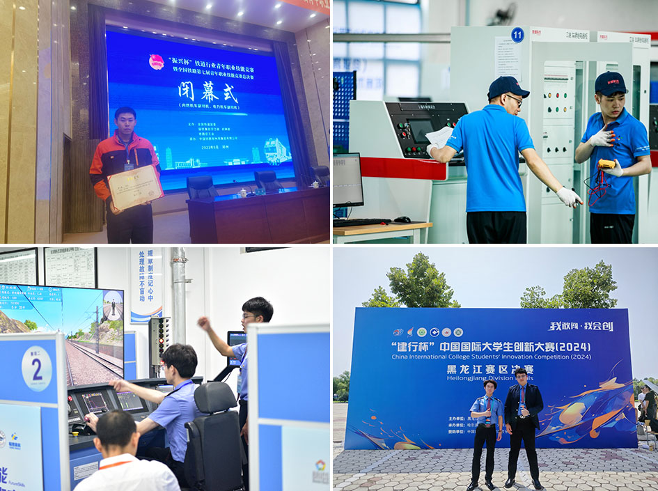 2.抓好竞赛引领。一是构建了“校、省(局)、国(集团)”三级竞赛体系,通过将“竞赛赛项与课程体系、赛项标准与课程标准、赛项任务与教学内容、竞赛成果与教学资源”深入融合,形成了人人参与、分层分类的技能“练兵场”,有效推动学生在竞赛中锤炼技能、检验能力,显著提升学习成效与实践能力,形成“以赛促学、赛学相长”的良性循环;二是构建了“专业融合、项目导向、成果转化”的创新创业竞赛体系,聚焦轨道交通行业痛点,组织学生参与“互联网+”、“挑战杯”等高水平双创赛事,引入企业导师指导,提供技术孵化与成果转化支持,将竞赛项目与解决企业实际问题紧密结合,培育学生创新思维、工程实践与创业能力。