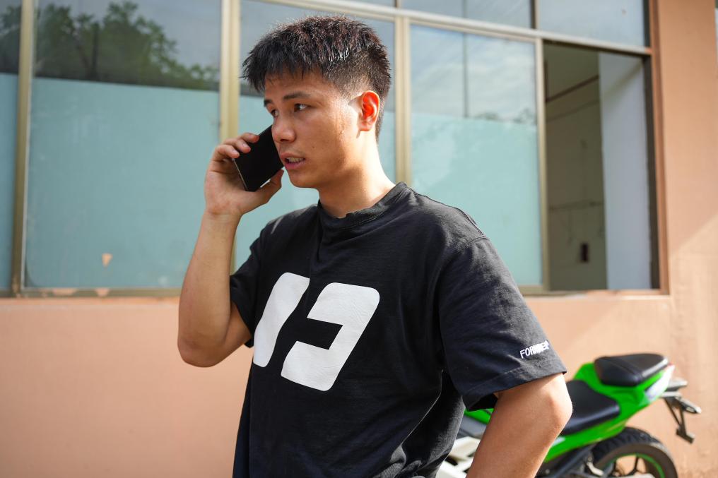 6月25日,林进标在贵州省榕江县工业园区内搬运救援物资。