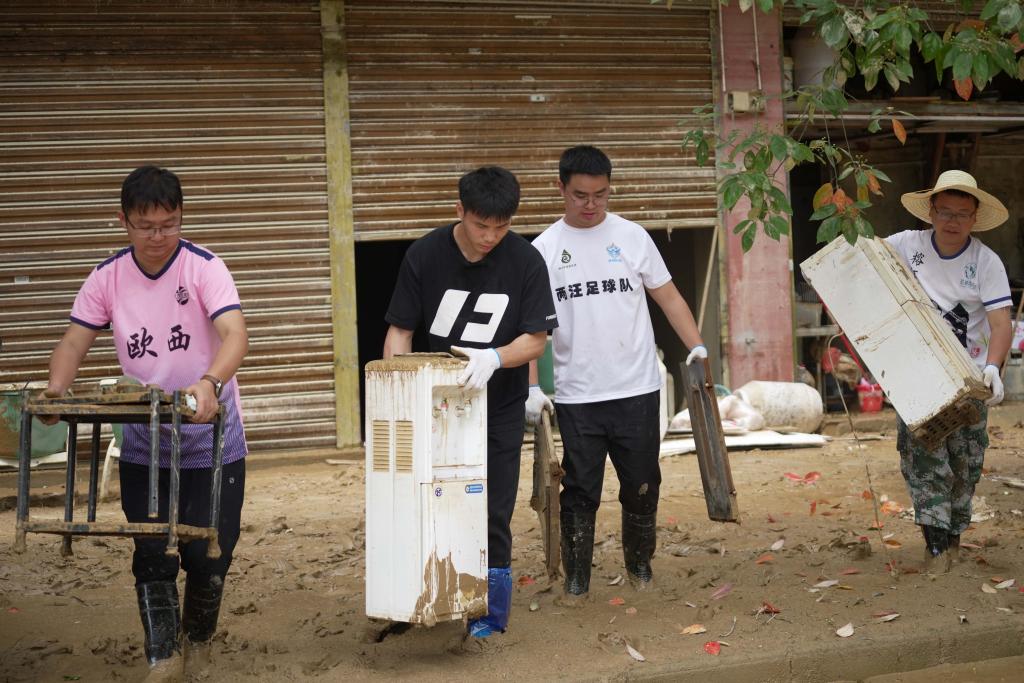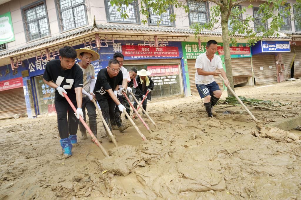 6月26日,林近标在榕江一中附近参与灾后清淤。