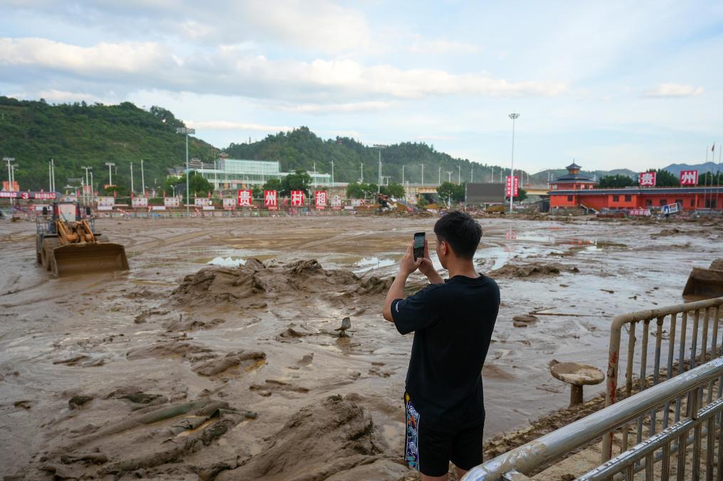 6月25日,林进标在贵州村超球场使用手机拍摄记录下了洪水退后的场景。