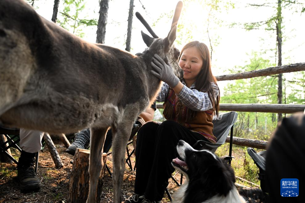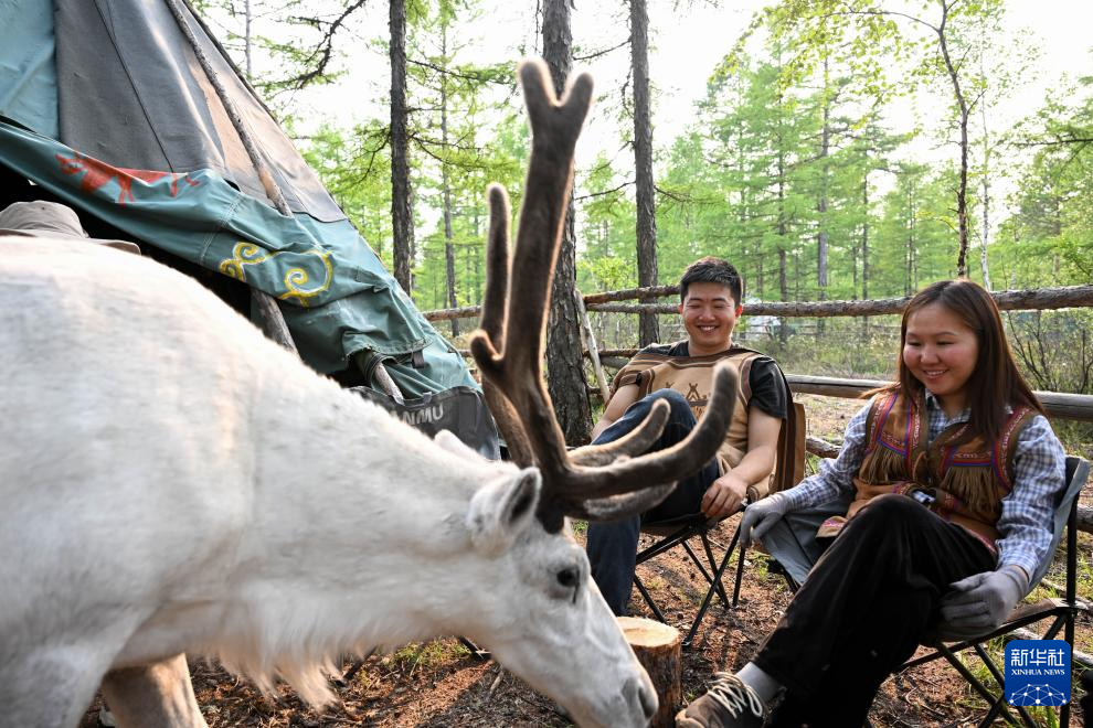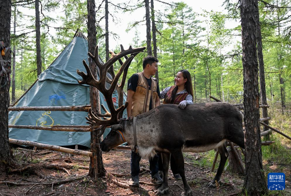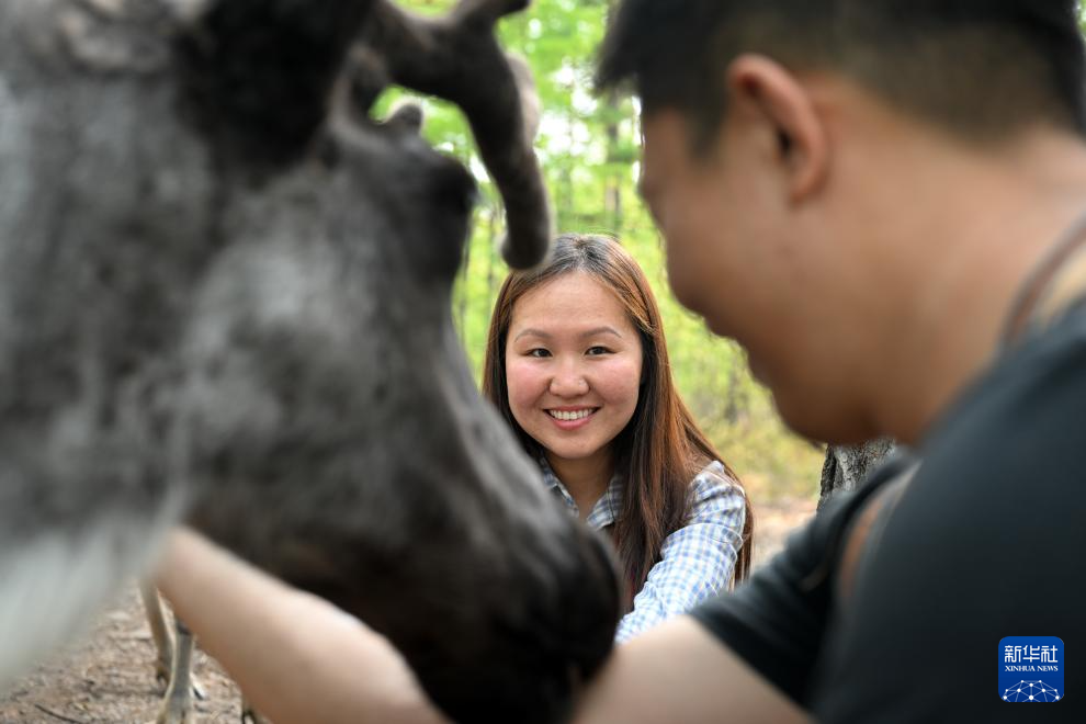 “这里没有大城市的人潮汹涌,有的只是虫鸣鸟叫,照顾驯鹿成为我们在山里唯一的娱乐活动,既然选择陪着爱人共同传承使鹿文化,我就不后悔。”吴启明说。