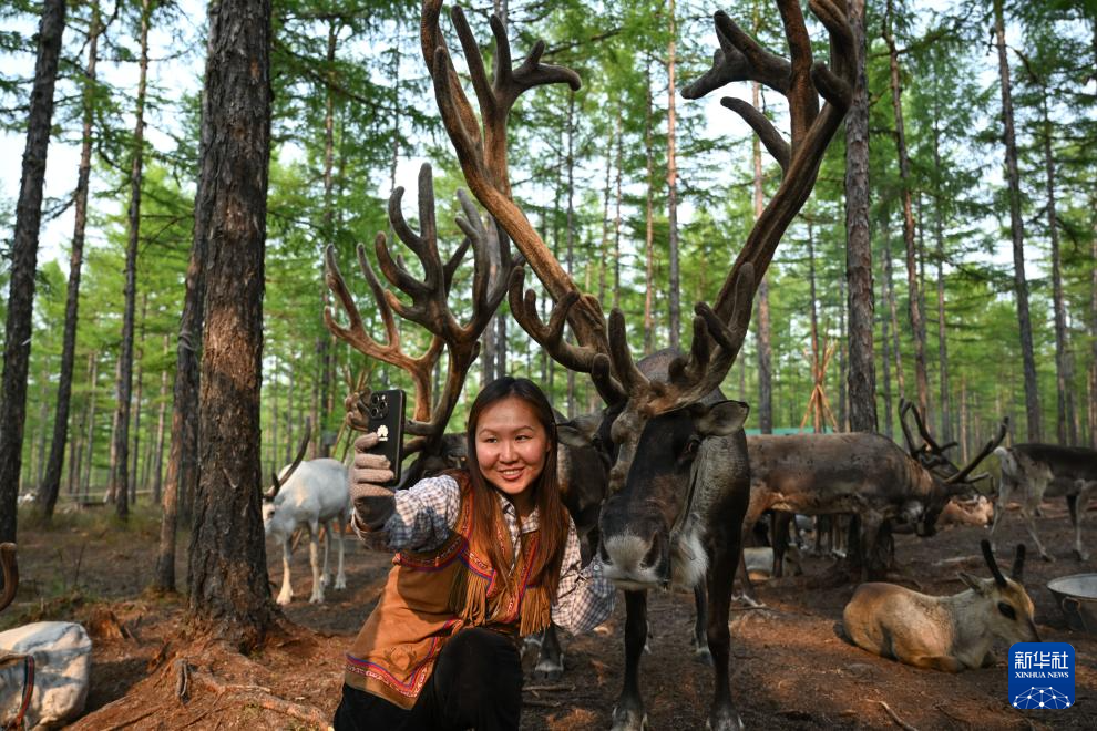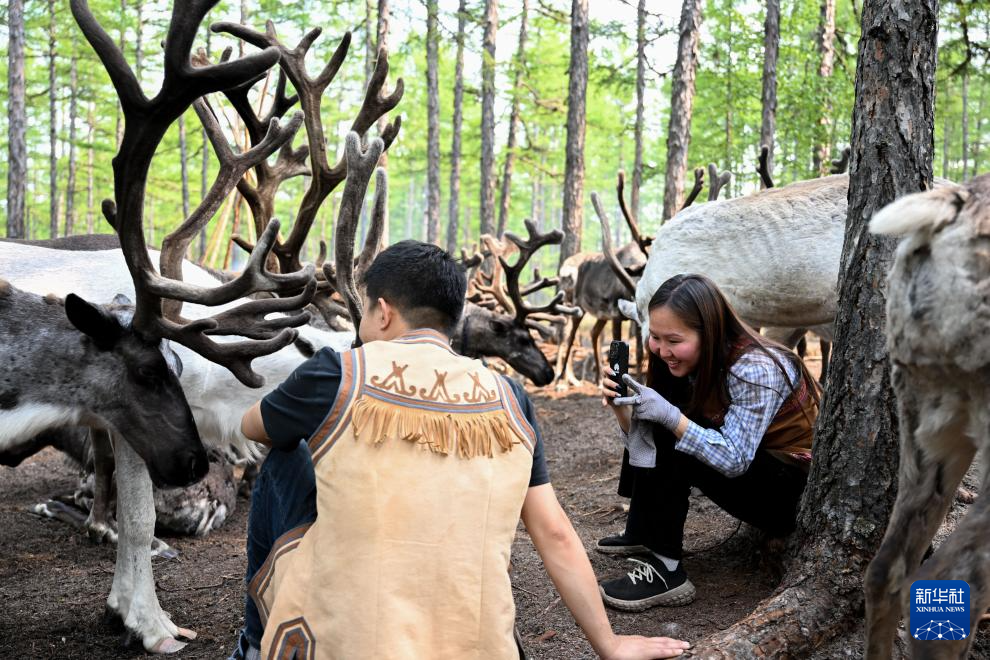 闲暇时,阿尤莎和丈夫吴启明拿起手机,通过视频记录生活的点点滴滴,借助短视频平台向外宣传使鹿文化,吸引游客前来体验游玩。