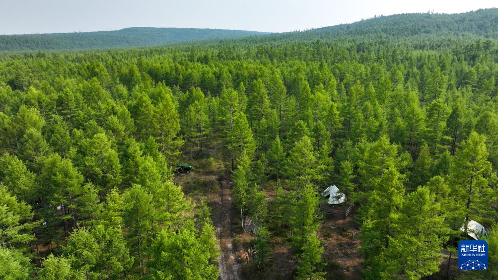 7月3日拍摄的内蒙古呼伦贝尔市根河市金河镇阿尤莎驯鹿放养点周边环境(无人机照片)。