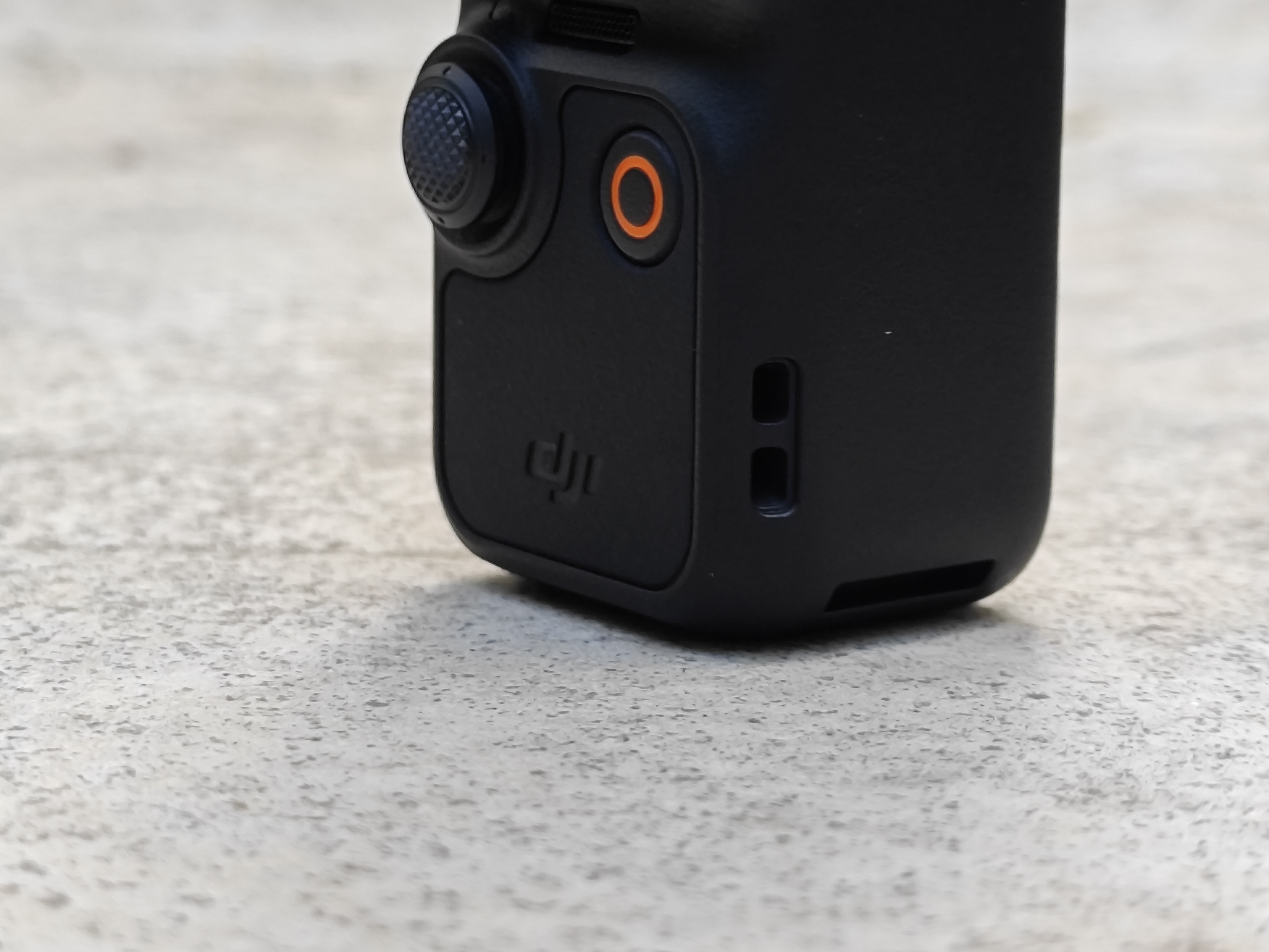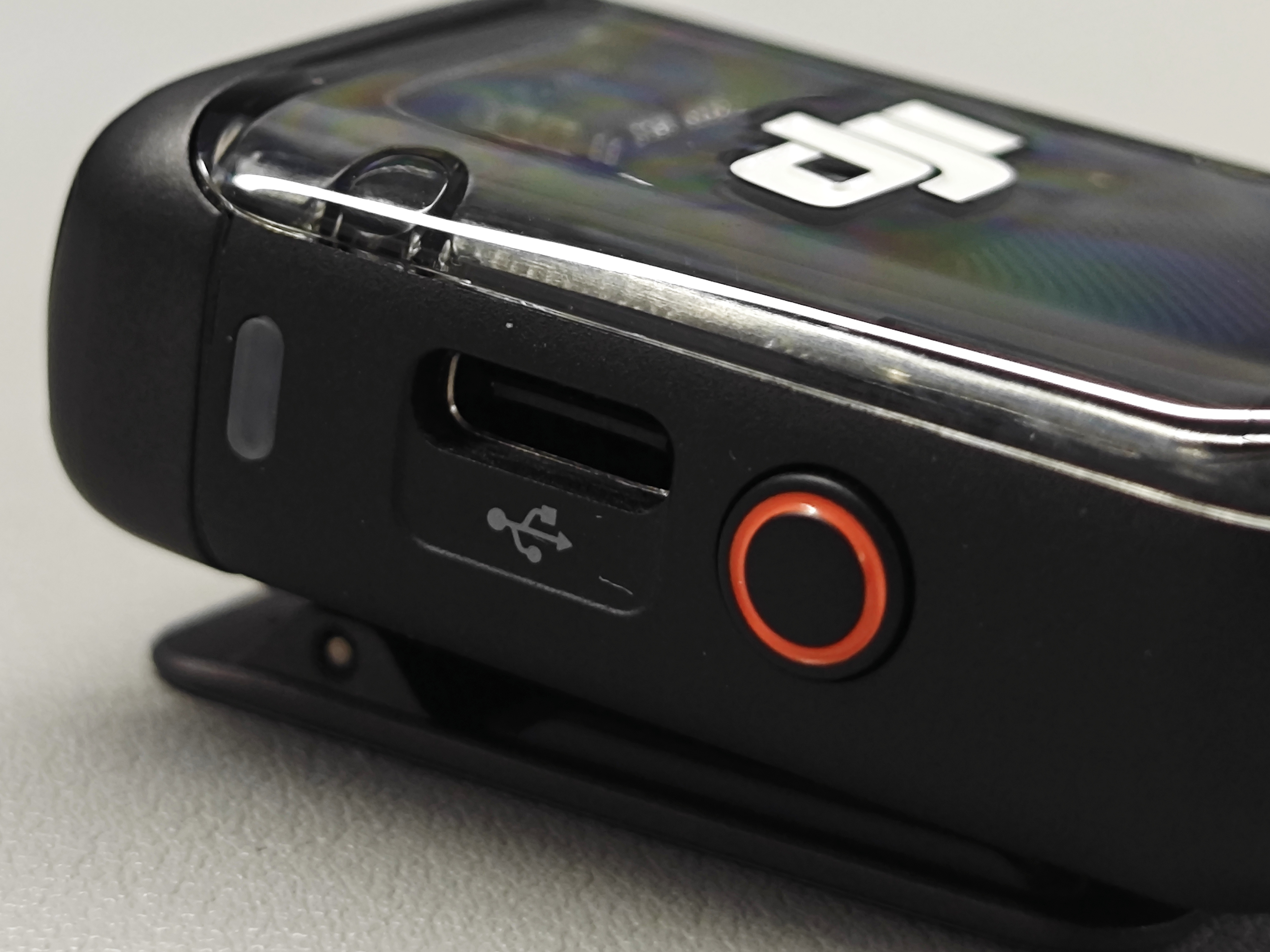 另一侧的橙色按键可以控制开拍和停录,旁边设有Type-C充电口。