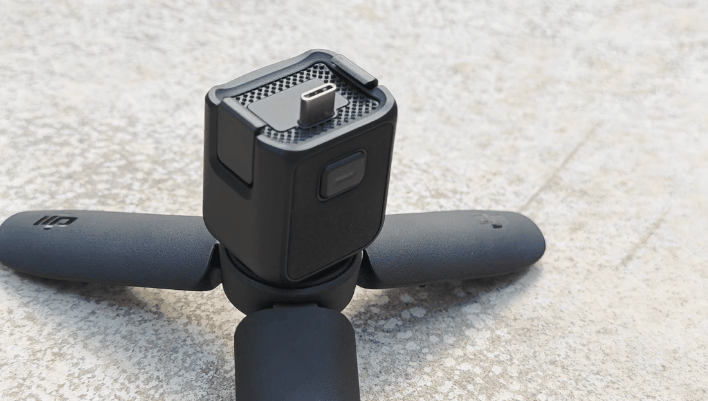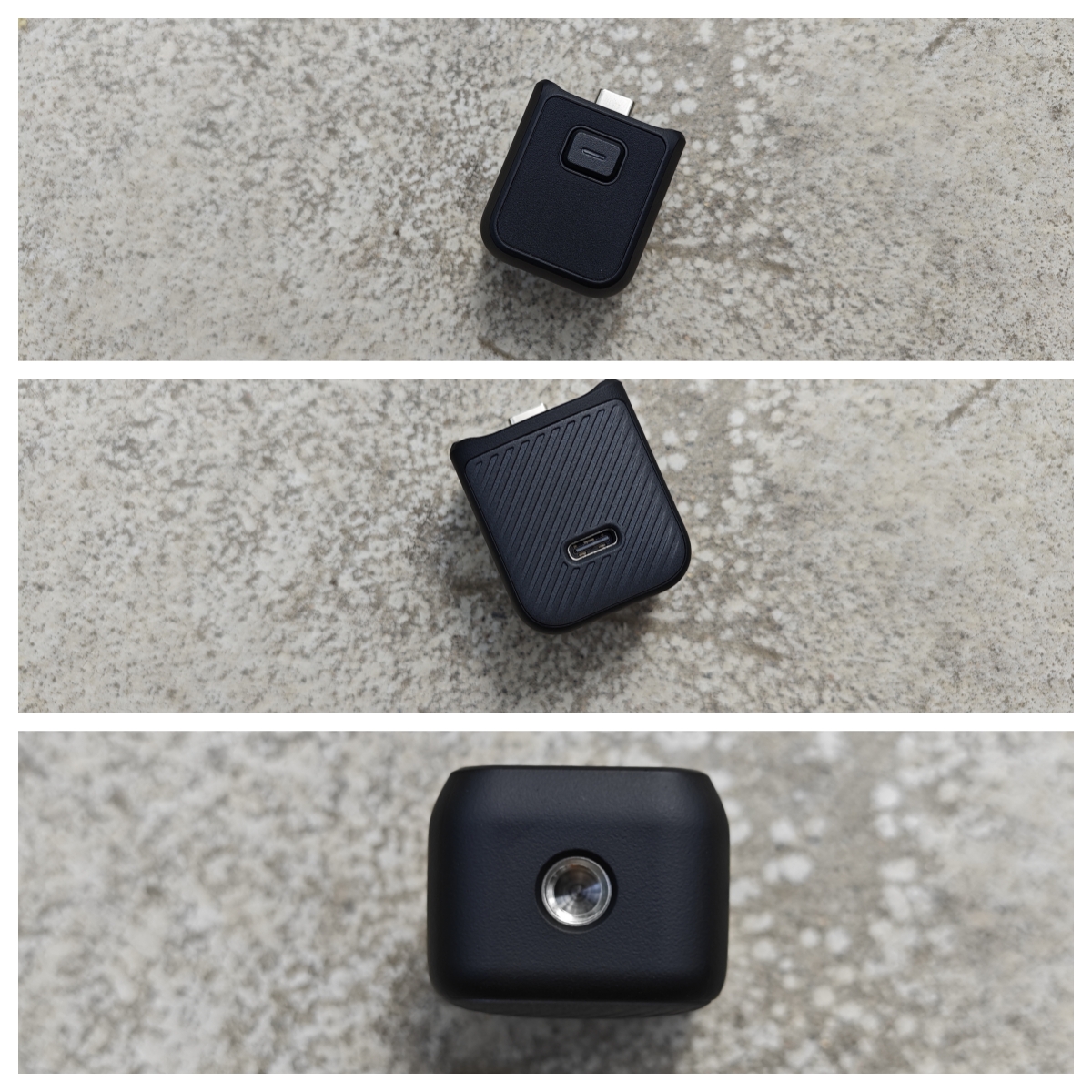 1/4螺纹手柄没有内置电池,主要功能就是延长握持长度,增加握持手感,同时将原机身底部的Type-C充电口转换到背部,为底部转接三脚架等其他外设的1/4螺口留出位置。