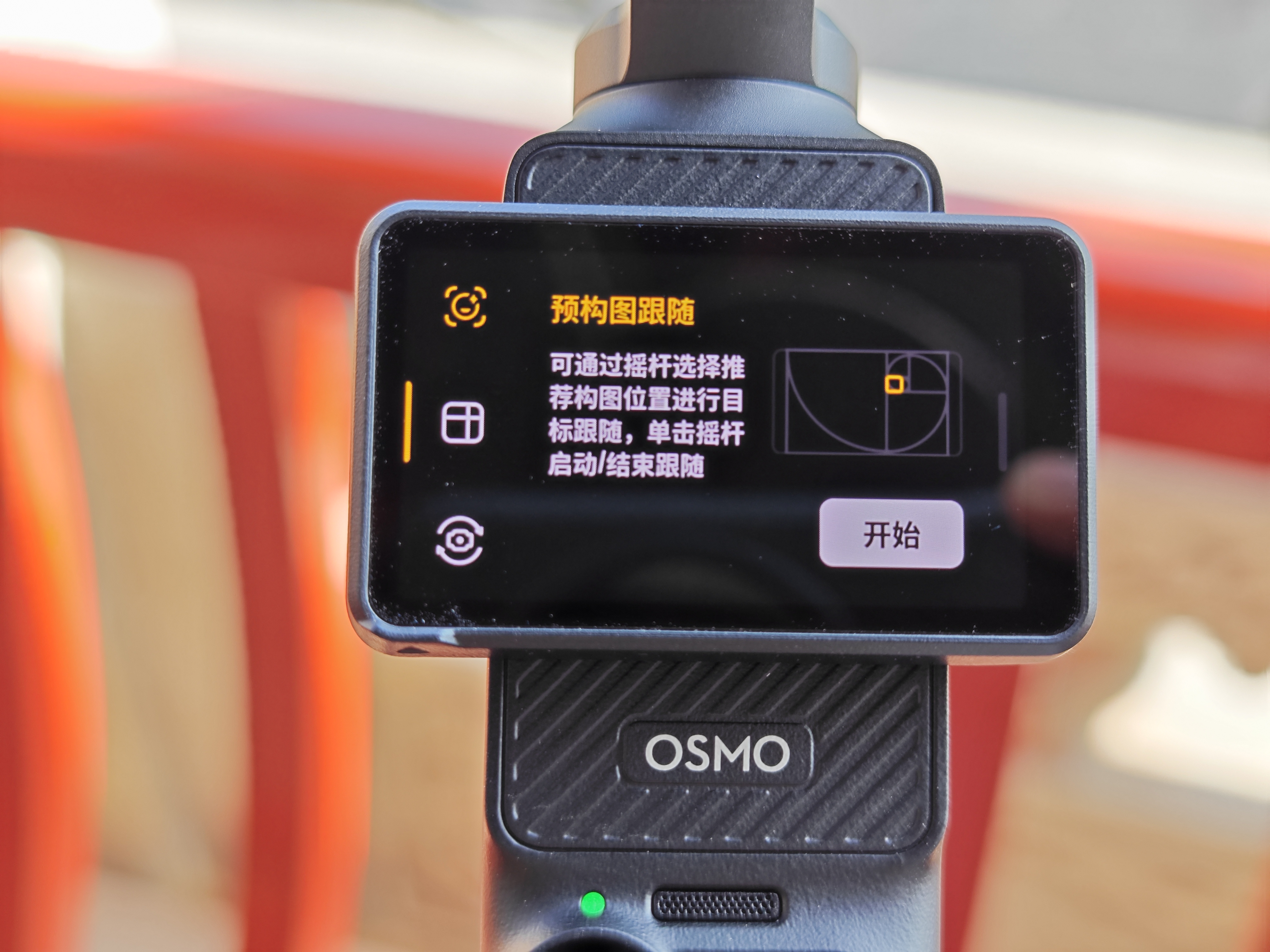 智能模式也是Pocket 3的“杀手锏”,智能跟随6.0新增主角跟随模式和预构图跟随模式,在屏幕的左侧可以切换选择。主角跟随模式开启后,系统会自动跟随画面靠近中央区域的人脸,非常适合单人Vlog拍摄使用。