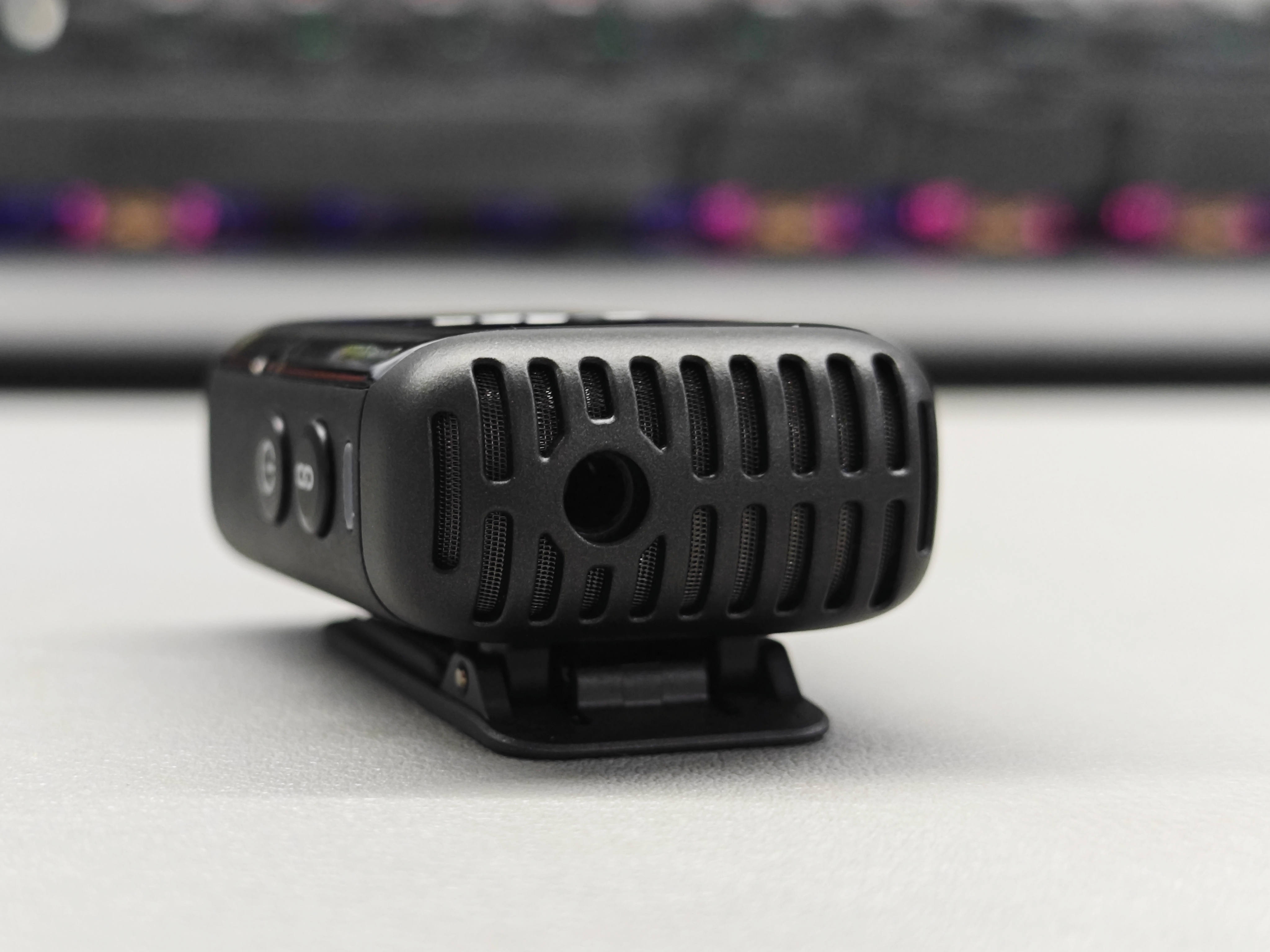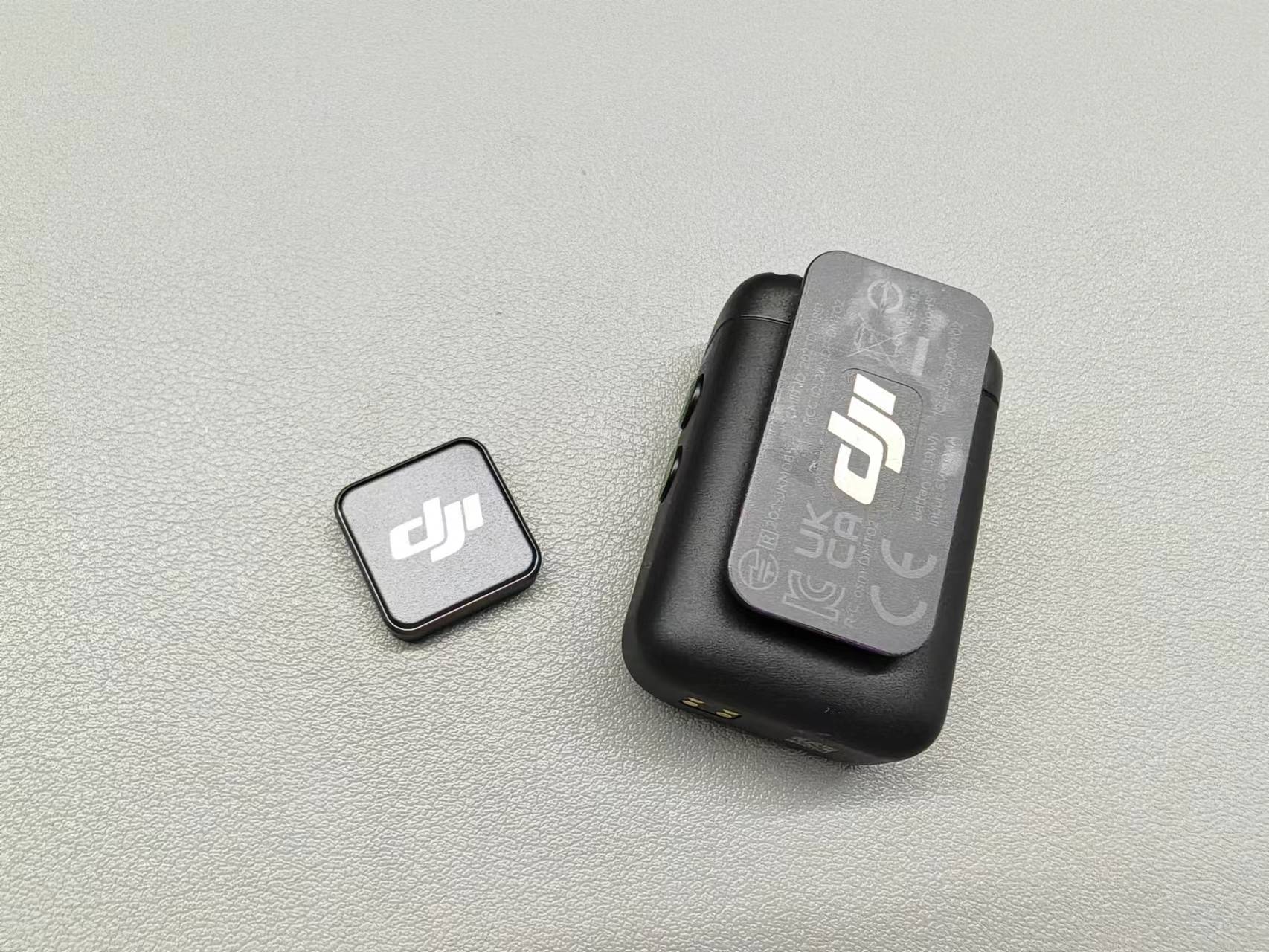 DJI Mic 2背部设有背夹,可以夹在创作者衣领等位置方便收声,另外还配备了一块磁铁,可以吸附在其他位置收声。