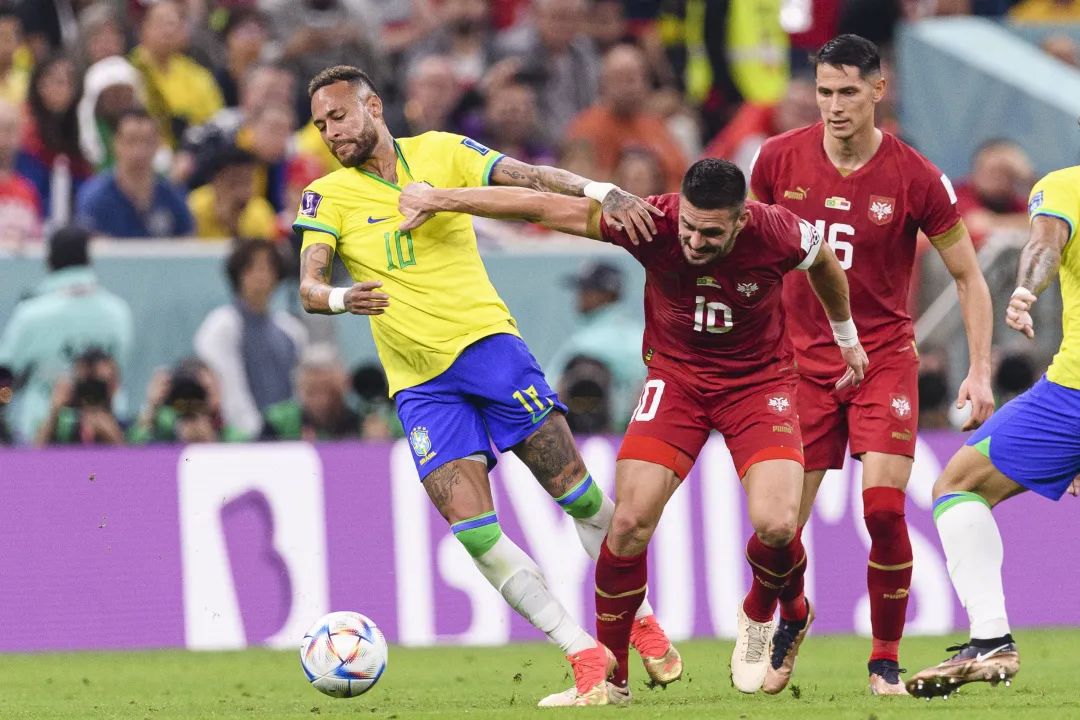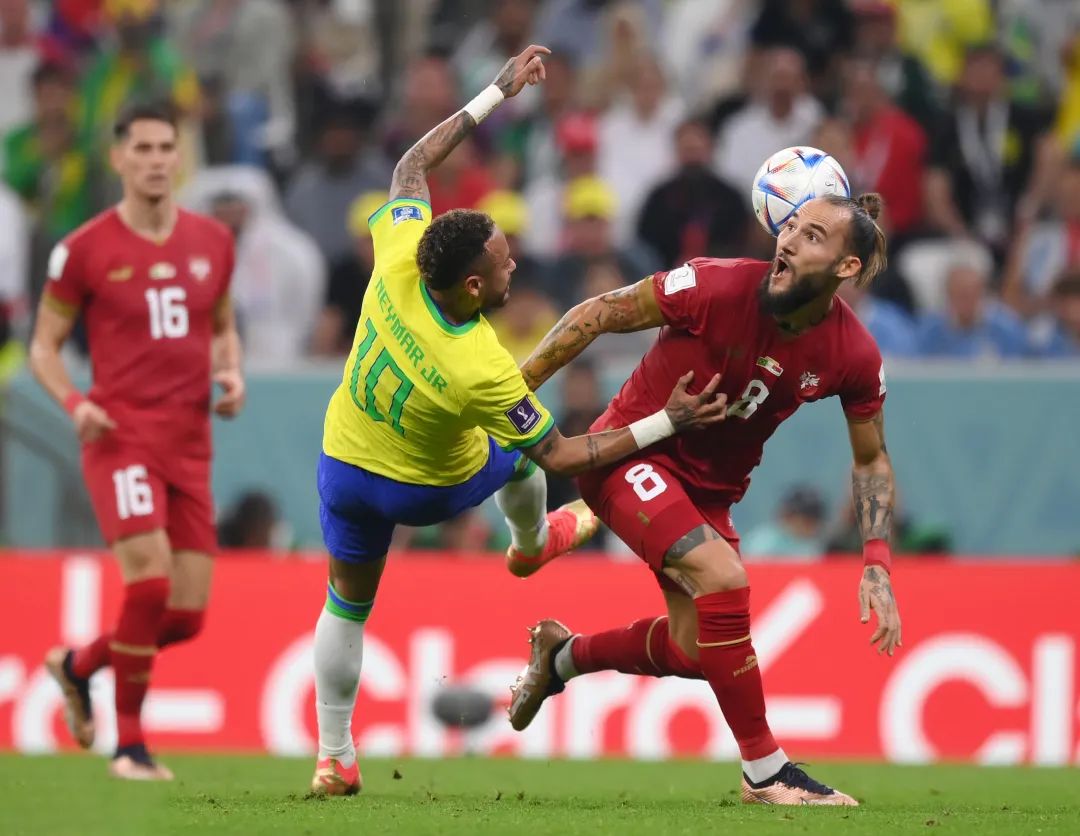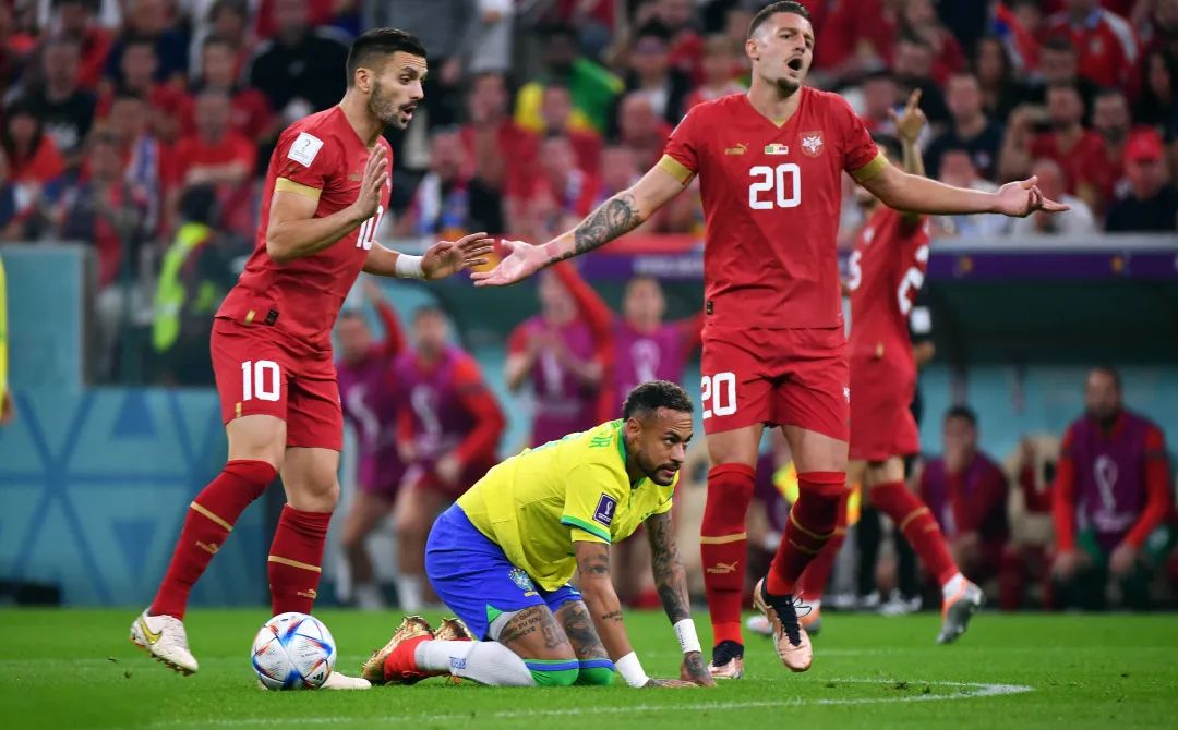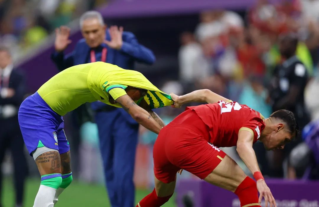 比赛中,塞尔维亚球员差点直接拽下内马尔球衣的一幕,也成了名场面。