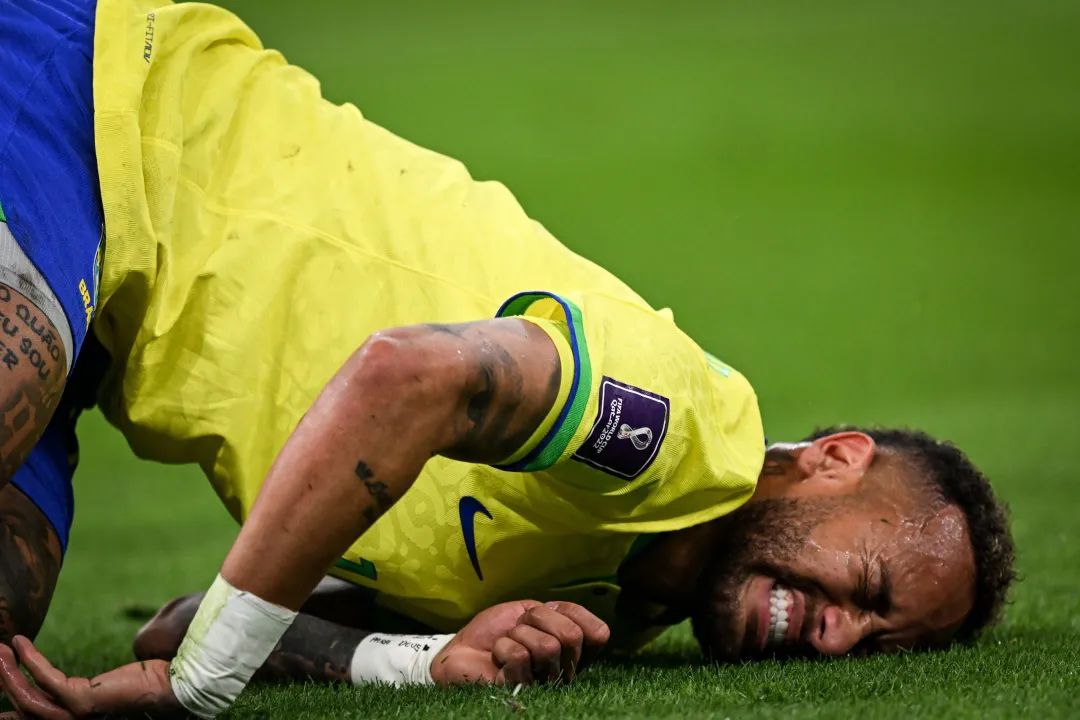 受伤倒地的内马尔露出痛苦表情