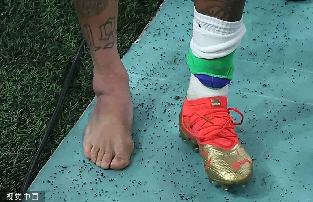 赛后,看着内马尔肿胀的脚踝,只有心疼的份。