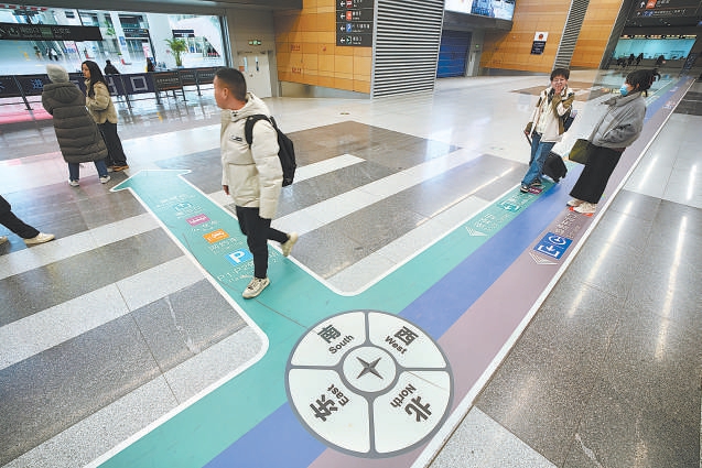 日前,丰台站南枢纽开通运营,增设了“跑道式地标”,全程引导旅客高效换乘地铁、出租车、网约车与公交车。记者 安旭东摄