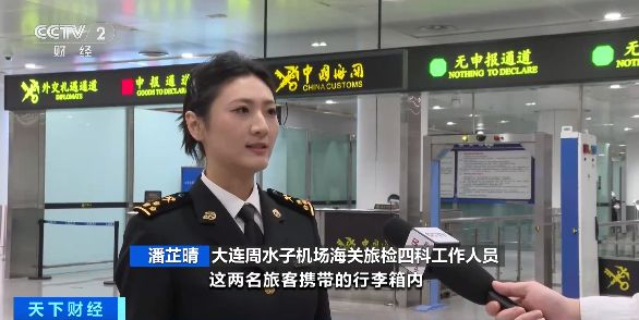在大连,海关工作人员在对一架进境航班进行监管时,发现两名旅客行李物品机检图像异常。