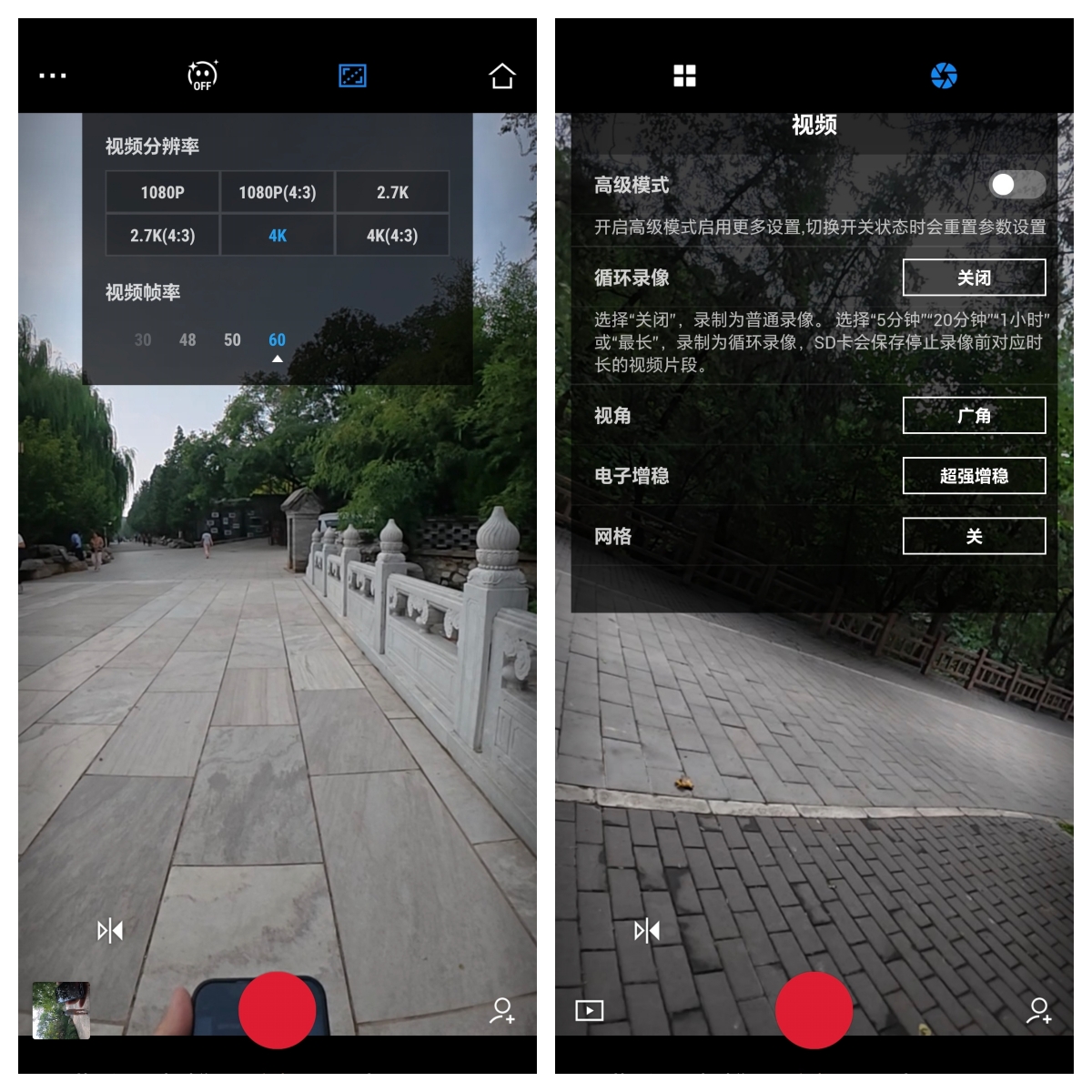 DJI Mimo也可以调整基本参数,为主相机单独拍摄保驾护航。