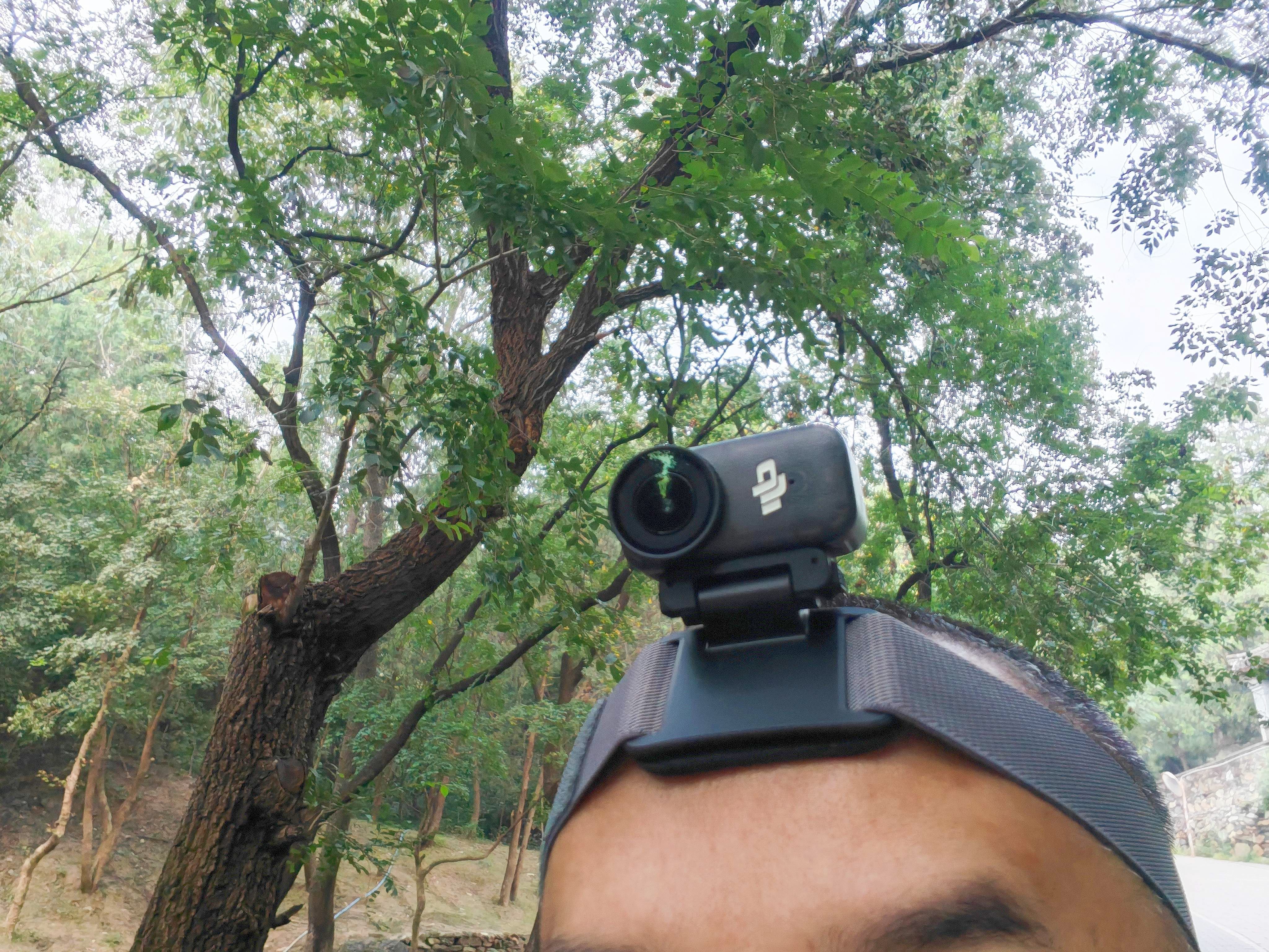 标准套装内的帽夹可以实现头戴第一视角,如果想实现同一视角但想更加稳固,可以购买大疆第一方配件——磁吸头戴。爬山,骑行都更加稳固。