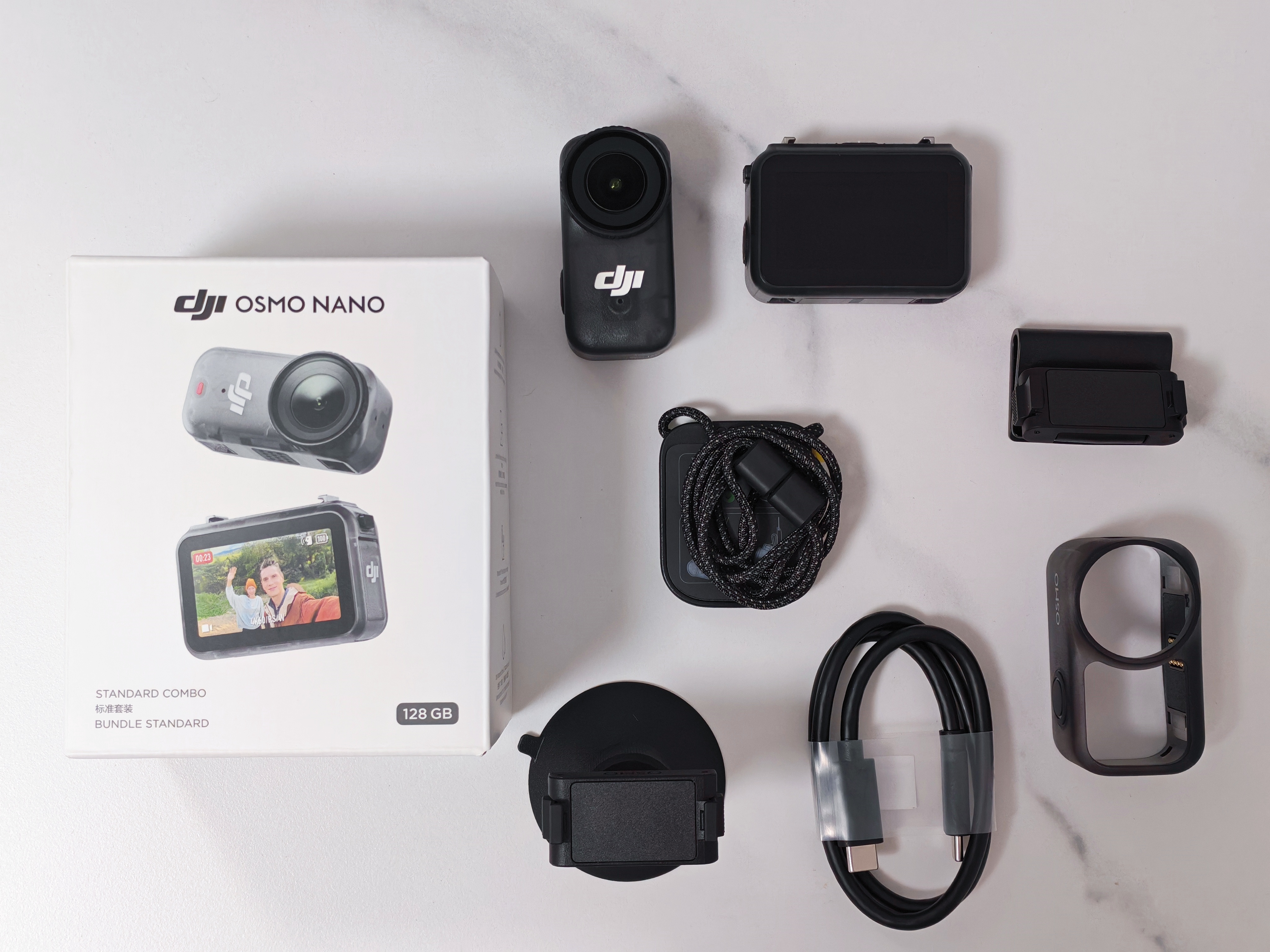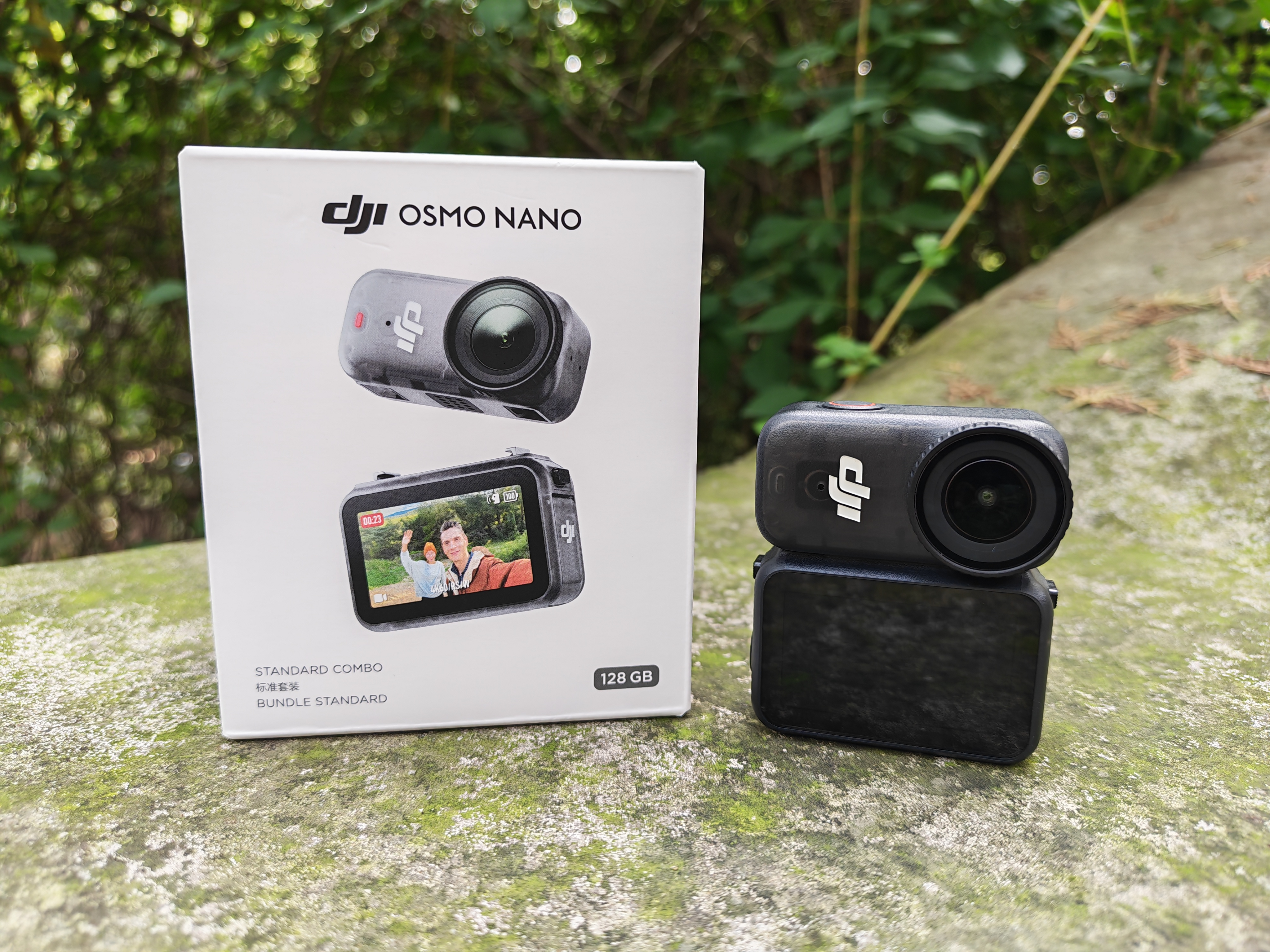 Osmo Nano机身自带存储,也有两个内存版本供用户选择,分别是64GB和128GB。我们拿到的是128GB版本,在包装盒上就有明显标注。