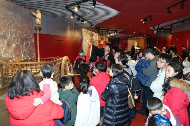 春节期间的汽博馆,还为游客带来了“穿越时空”的快乐。“时光穿梭,角色扮演讲解”活动中,身着特色服装,扮演不同角色的讲解员每次出动,都吸引了大批观众的跟随。五层创造馆上演的沉浸式剧本游活动“玩转汽博·追光之旅——穿越汽车百年时光”,让每一位参与者都得以亲身体验汽车发展历史的变迁。