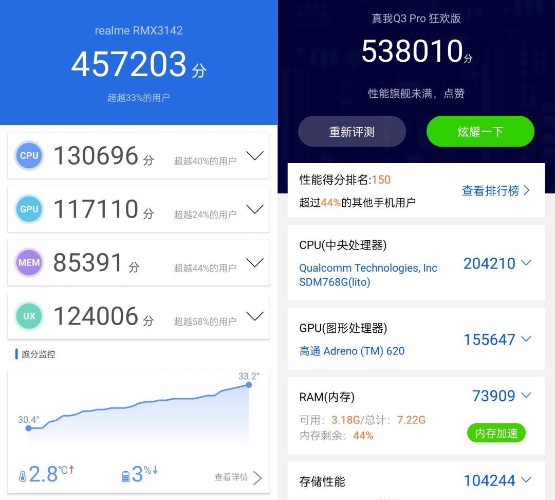 最后,我们来看一下realme Q3 Pro狂欢版的跑分状况: