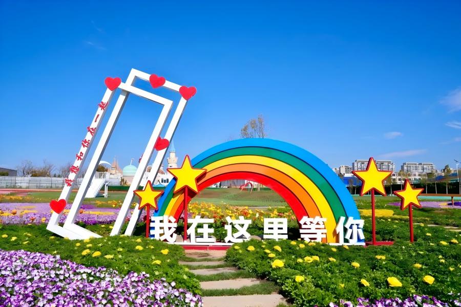 园区设置“我在这里等你”等多处主题打卡点,让游客沉浸在花语故事与浪漫语句中,打造专属记忆点。同时,照明系统经过专业规划,黄昏时分暖色调灯光烘托温馨氛围,入夜后部分区域切换为星空般的点点微光,搭配以白色、浅蓝花卉为主的月光花园区,打造静谧雅致的夜间赏花浪漫。