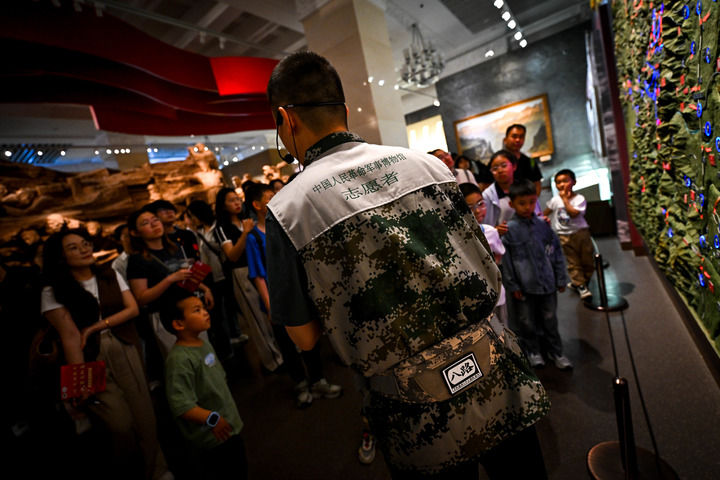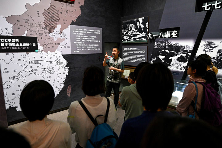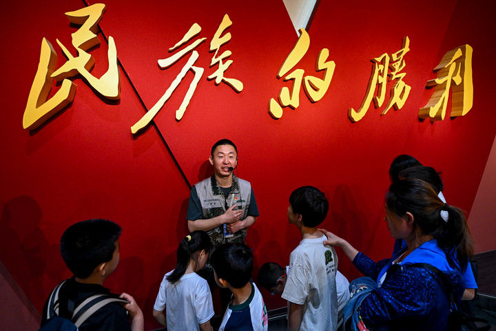 讲解的声音回荡在展厅里,站在参观队伍前排的孩子们仰起头,似懂非懂地望向陈涛,“民族的胜利”五个金灿灿的大字照亮了他们稚嫩的面庞。