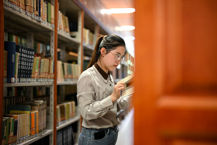 5月7日,在南开大学津南校区,杨雅丽在历史学院采薇阁(资料室)查阅资料。新华社记者 张铖 摄