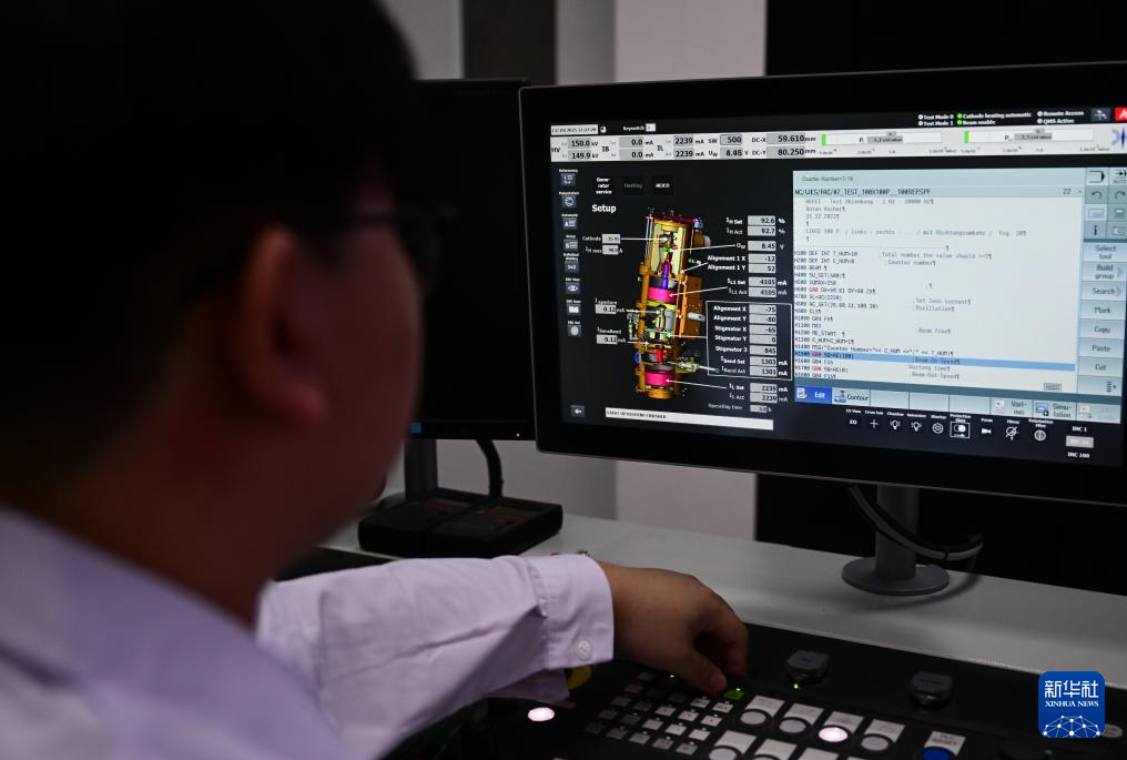 10月13日,科研人员在聚变堆主机关键系统综合研究设施“夸父”(CRAFT)偏滤器原型部件测试现场工作。新华社记者 周牧 摄