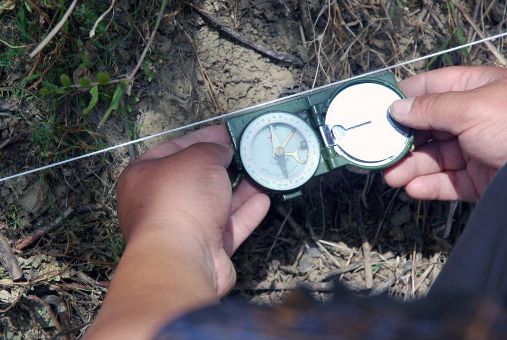 2007年5月17日,考古人员在凌家滩遗址发掘现场用罗盘定位,为2007年5月18日启动的第五次发掘进行前期准备。新华社发