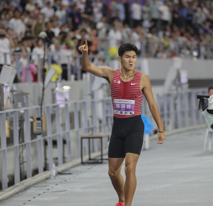 8月4日,陈圆将在全国田径锦标赛男子110米栏决赛后。韩强 摄