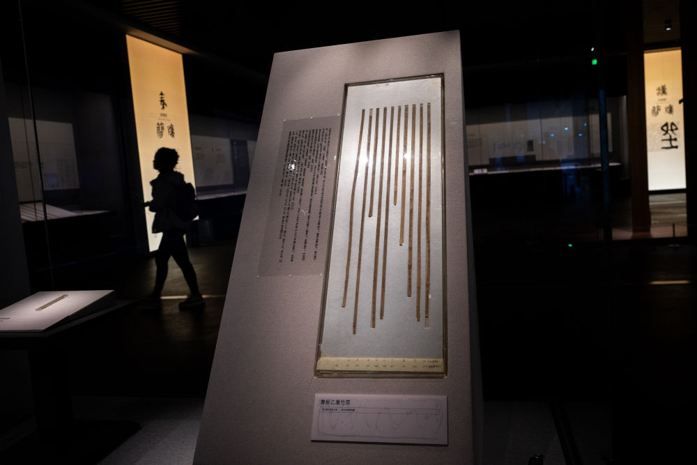 这是10月28日在《简读中国——中国出土简牍展》上拍摄的曾侯乙墓竹简。
