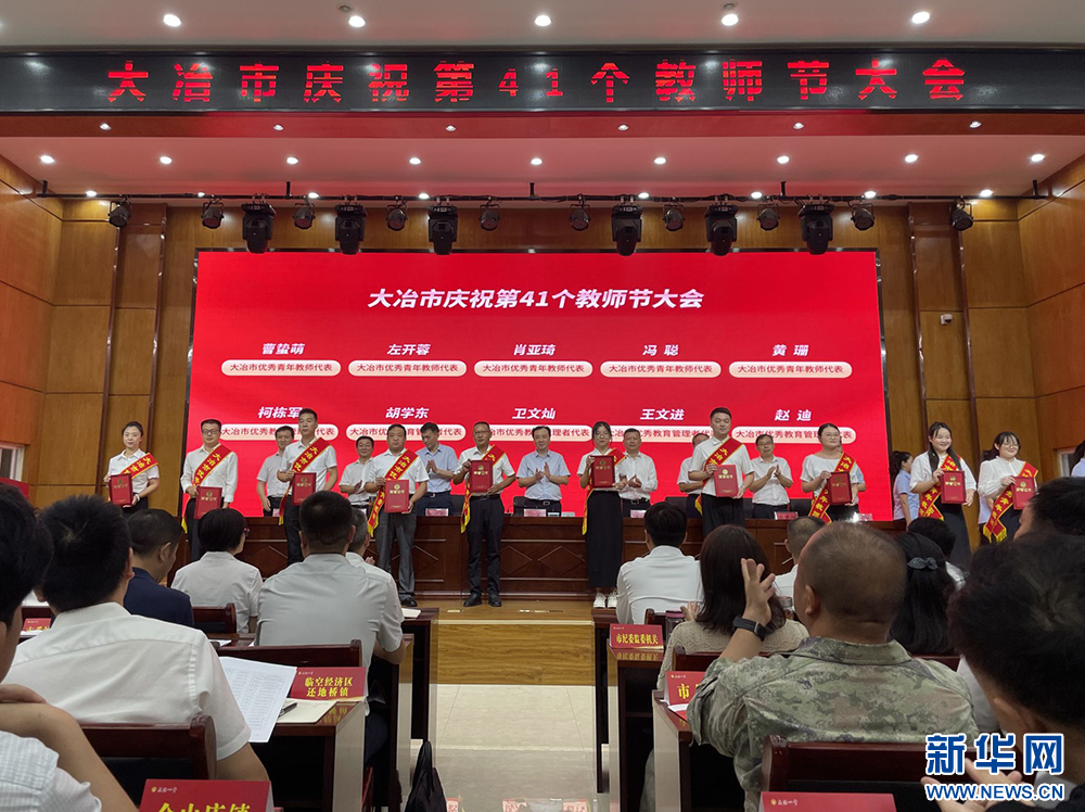 9月8日,湖北大冶市庆祝第41个教师节大会在大冶一中举行。大会现场公布了“大冶市优秀教联体”“大冶市优秀教师团队”“大冶市优秀教育管理者”“大冶市优秀班主任”“大冶市优秀教师”等名单,鲜红的证书、热烈的掌声激励着广大教育工作者在平凡而伟大的工作岗位上再立新功、再创佳绩。