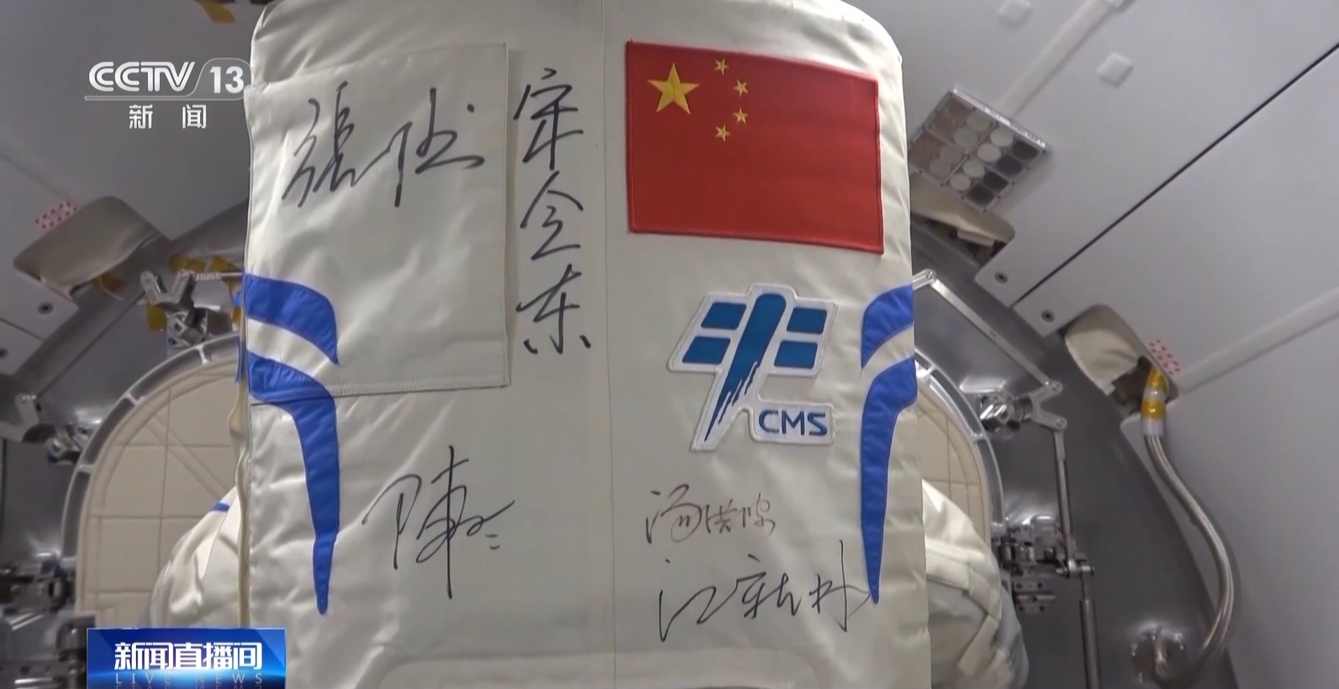 中国航天员科研训练中心张万欣:飞行服B大家都看到了,它的背后有很多航天员的签名。它凝聚着航天人代代接续奋斗、自主创新的精神,同时它也见证着我们空间站建造的历程。我认为它不仅仅是我们设计团队的骄傲,也是载人航天的骄傲,更是我们中国人的骄傲。我坚信它会在适当的时机与大家见面的。