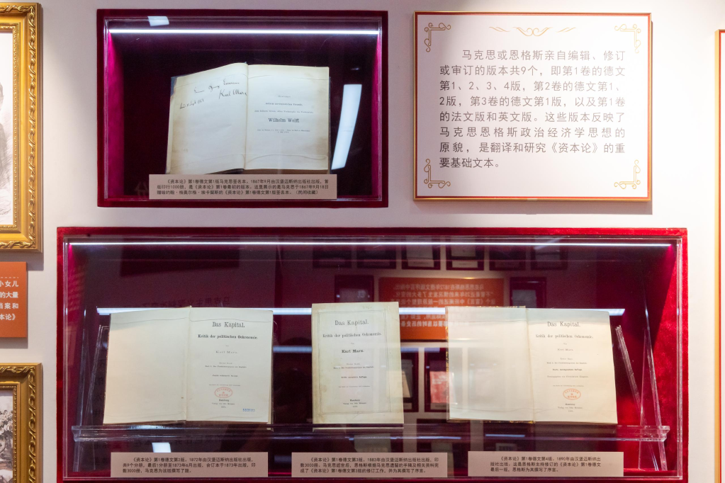 在展出的文献中,15份马克思、恩格斯的手稿是马克思主义经典著作编纂工作的文献源头,泛黄纸页上,密密麻麻的字迹纵横交错,有的工整严谨,有的随性洒脱,仿佛能窥见他们伏案疾书时的专注神情;看到了1920年陈望道翻译的中国第一个《共产党宣言》全译本,这是马克思主义从静静流淌的摩泽尔河来到巍巍长江边,为中国带来真理的火种;看到了不同装帧、不同语言、不同时代的《共产党宣言》与《资本论》,它们在全球各地留下深刻的“思想脚印”,彰显着马克思主义真理跨越时代的强大生命力。