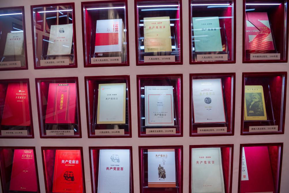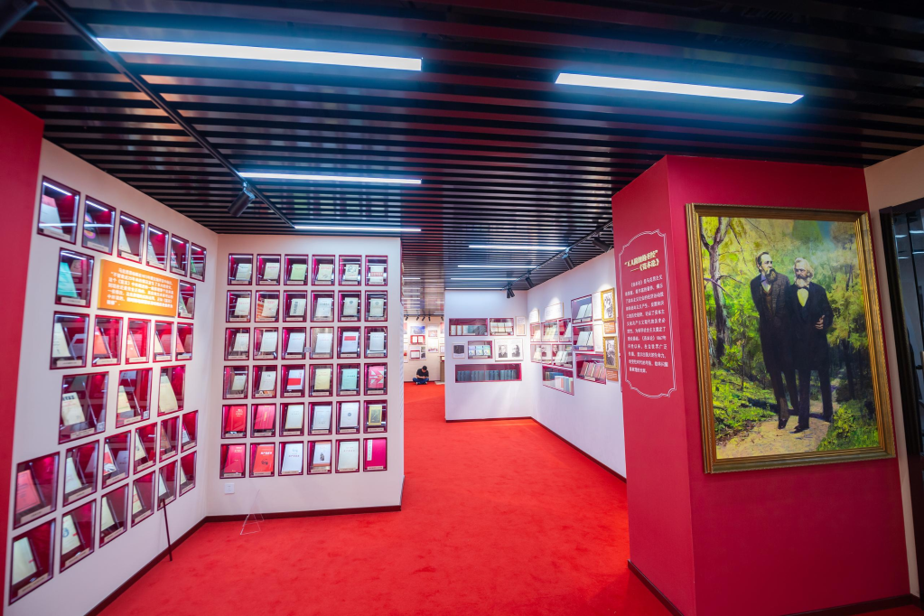 展柜里的文献不必细辨篇目,单是斑驳的封皮、批注的墨迹,已将信仰的重量铺陈开来。从《伦敦笔记》的墨迹中,读出的是马克思政治经济学理论的形成轨迹;从各国语言的《共产党宣言》版本中,感受到的是无产阶级政党理论的历史穿透力……