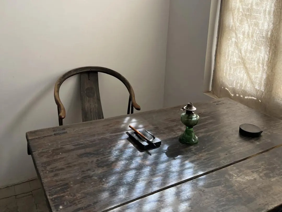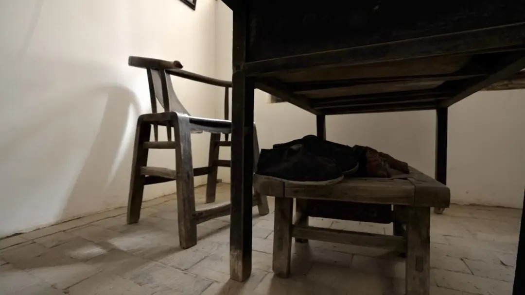 延安凤凰山革命旧址毛泽东旧居内的桌椅。(新华网 李哲贤 摄)