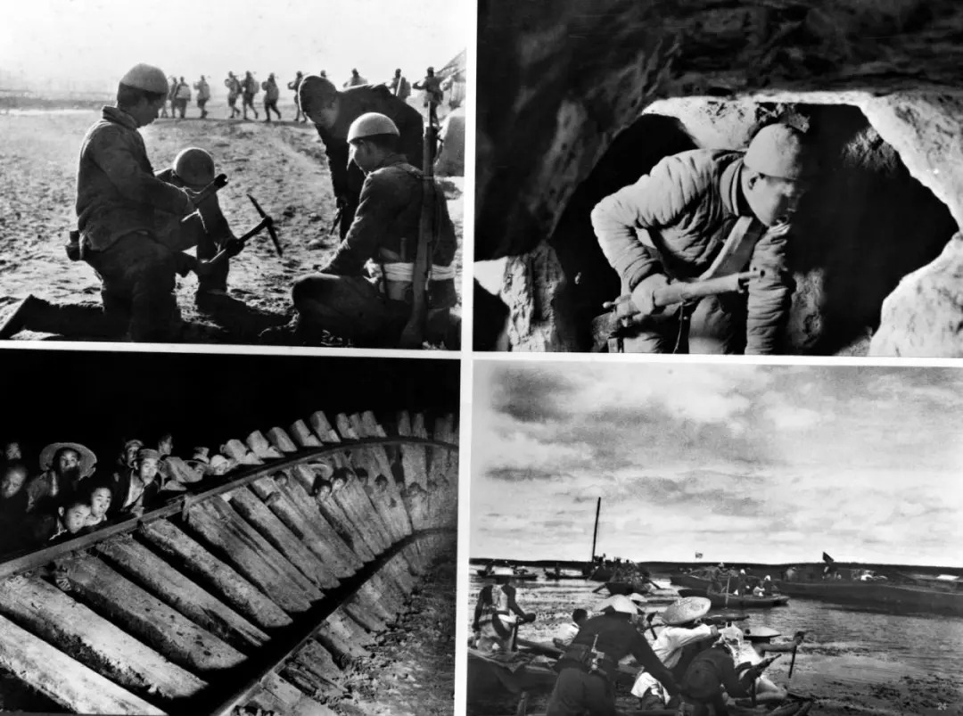 上图左:地雷战。上图右:地道战。下图左:破袭战。下图右:水上游击战。新华社发(资料照片)