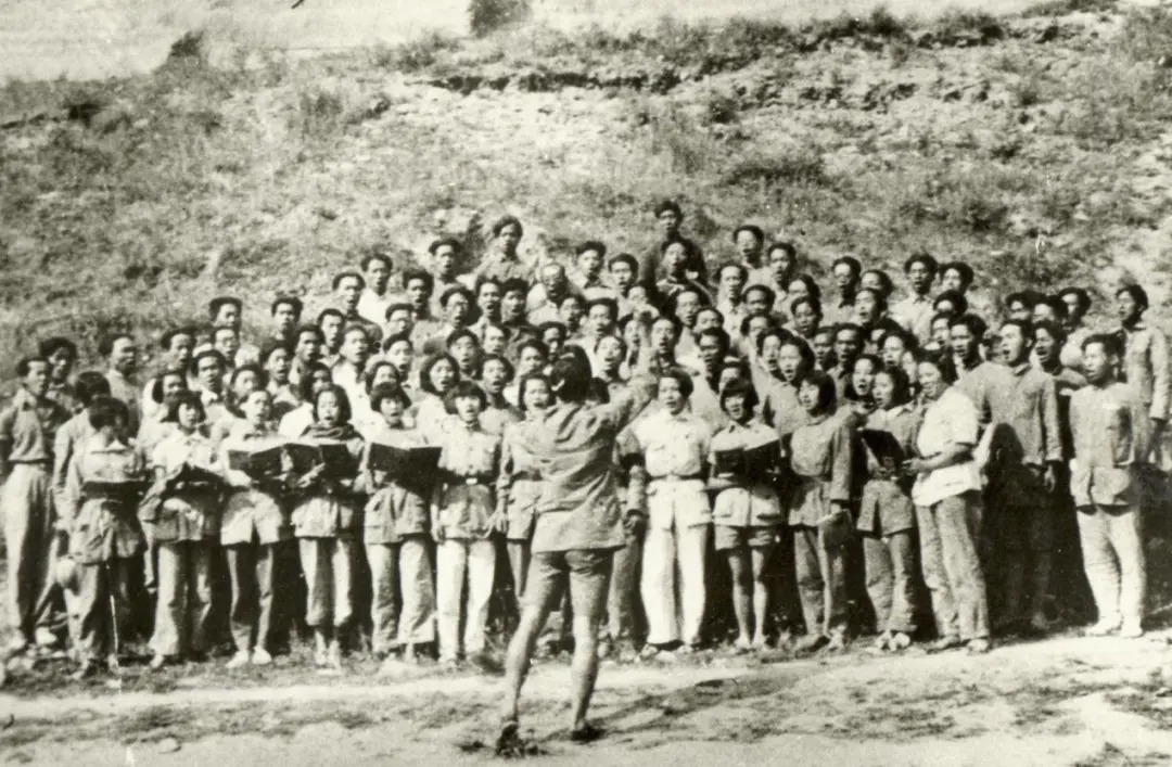 这是1939年冼星海指挥鲁艺学员排练《黄河大合唱》的资料照片。新华社发(延安文艺纪念馆供图)