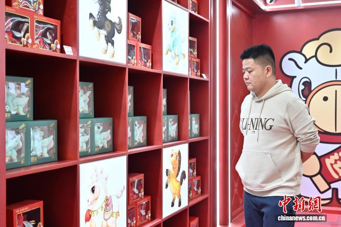 1月14日,广东省东莞市石龙镇一马年“潮玩”主题快闪店吸引消费者。随着马年春节临近,广东东莞这座“中国潮玩之都”迎来马年“潮玩”生产销售热潮。中新社记者 陈楚红 摄