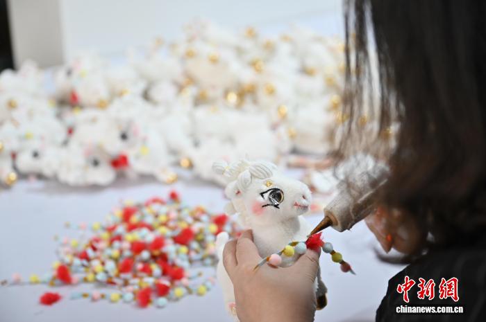 1月14日,广东省东莞市茶山镇的工作人员在制作马年毛绒玩偶。随着马年春节临近,广东东莞这座“中国潮玩之都”迎来马年“潮玩”生产销售热潮。中新社记者 陈楚红 摄