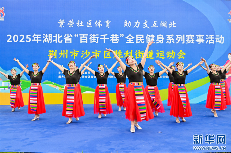 图为5月15日荆州市沙市区胜利街道运动会广场舞比赛现场。新华网发
