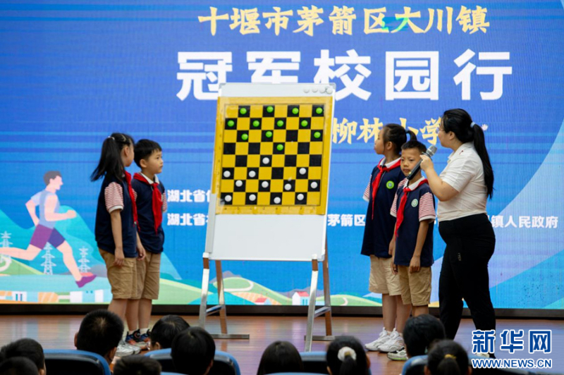 图为6月17日国际跳棋冠军管逸飏参加冠军校园行活动。新华网发