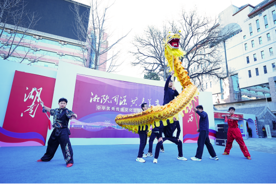 活动在湘、陕两省大学生同台舞龙、武术表演中拉开帷幕。青春的面庞、充满活力的舞姿,瞬间点燃现场气氛。随后,一曲悠扬婉转的《浏阳河》、一场动感十足的民族健身操、一首嘹亮高远的《山丹丹开花红艳艳》接连上演,把现场观众引入悠久灿烂的中华文化历史长河中,泛舟荡漾。