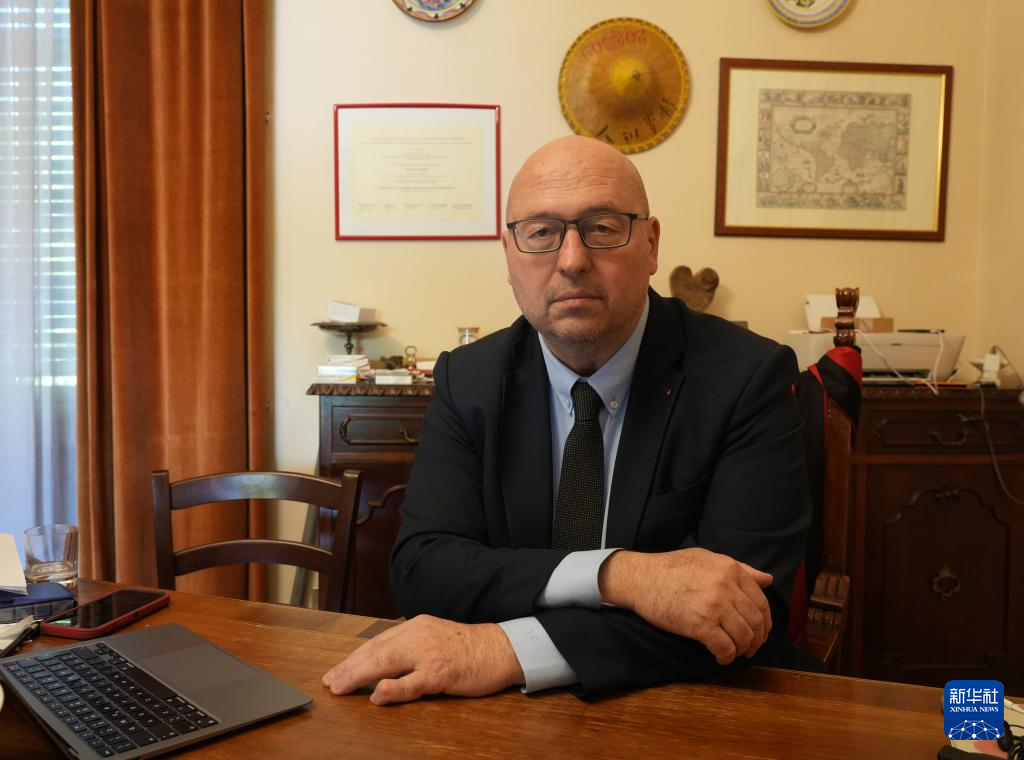 7月15日,意大利戈里齐亚市文化大使戴维·奥尔赞在戈里齐亚接受新华社记者专访。新华社记者 任耀庭 摄