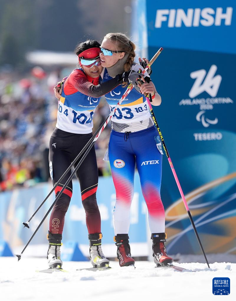 当地时间3月13日,在意大利泰塞罗举行的米兰-科尔蒂纳冬残奥会冬季两项女子短距离追逐(视障)比赛中,中国选手王跃获得亚军。