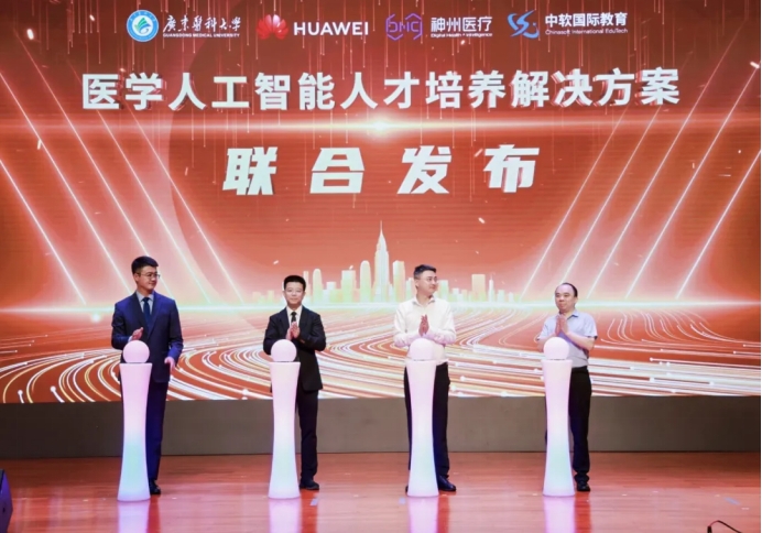 为破解医学人工智能复合型人才短缺难题,广东医科大学联合华为、神州医疗、中软国际教育正式发布《医学人工智能人才培养解决方案》。曾志嵘介绍,医学人工智能人才培养的整体建设采用“四个三”框架,具体包括:“医智融合、人机融合、产教融合”三融合,“生态支持、技术支持、能力支持”三支持,“共建、共享、共赢协同”三协同,“国际合作、教育、医疗”三场景。依托华为ICT根技术、联合创新天工实验室、产教协同育人基地及AIMS-GDMU平台,学校已成功上线医学人工智能理实一体化实训平台,并构建“课程、微专业、证书+赛事+AI学分”的支持体系。该方案以华为根技术为核心支撑,旨在培养既掌握人工智能、医学健康等多领域知识,又能将先进技术应用于解决医学基础与临床实际问题的复合型人才。