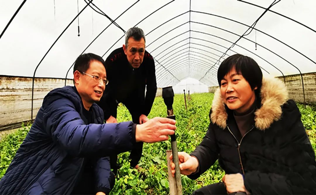 1月31日,重庆市铜梁区气象局组织农气技术人员深入二坪镇严家村蔬菜种苗基地,调研蔬菜生长发育情况,提示近期将出现降雨降温天气,提醒农户科学做好田间管理工作 图/罗先猛