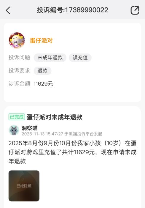 “小孩子拿手机充值,申请未成年退款不给退。”“儿童拿大人手机玩小游戏充了很多钱,不予退款。”“未成年退款太少了,为什么不全退?”近期,在黑猫投诉平台上,各类游戏的未成年人充值退款成为热门投诉主题。