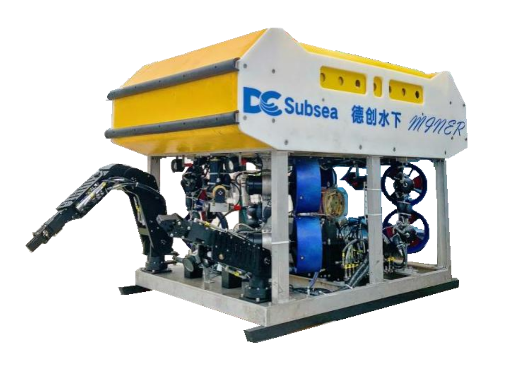 在深圳市德创水下智能装备有限公司展区,记者看到了这款“水下矿工”机器人模型。它的最大作业深度可达2000米,整机功率50千瓦,能在复杂洋流中灵活作业。