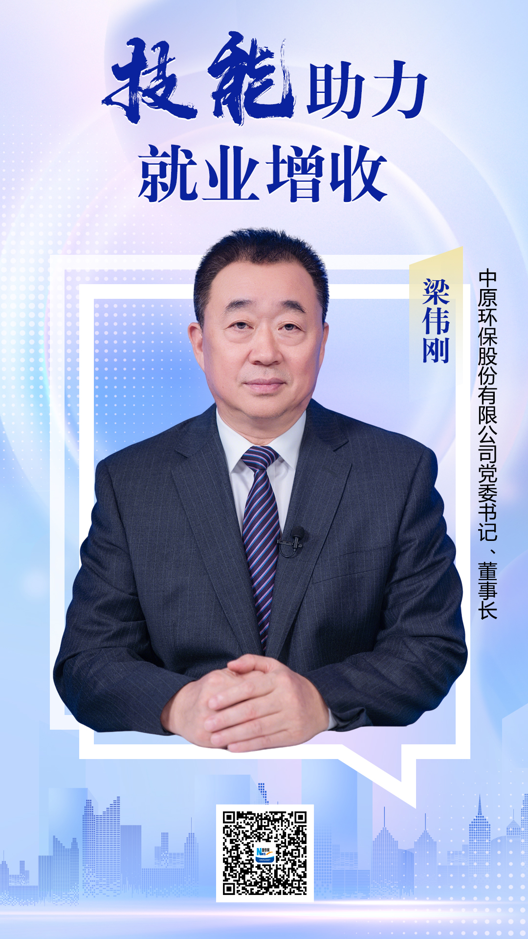 新华网郑州9月24日电 作为我国技能人才领域的顶级盛会,第三届全国技能大赛于今年9月19日至23日在河南省郑州市举办。为深度挖掘大赛价值、传递技能人才成长正能量,人力资源和社会保障部携手新华网重磅推出系列高端访谈节目《豫见国赛话技能》。在第三期“技能助力就业增收”主题节目中,中原环保股份有限公司党委书记、董事长梁伟刚围绕公司技能人才队伍建设的创新、实践和成果进行分享。