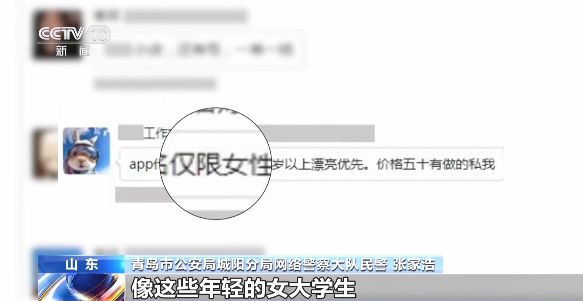 青岛市公安局城阳分局网络警察大队民警 张家浩:像这些年轻的女大学生,特别受他们欢迎的,特别是社交平台账号没有注册过,这一类账号往往价格非常高,特别是这种需要实名认证的年轻女性的账号,往往他们的获利就颇丰。