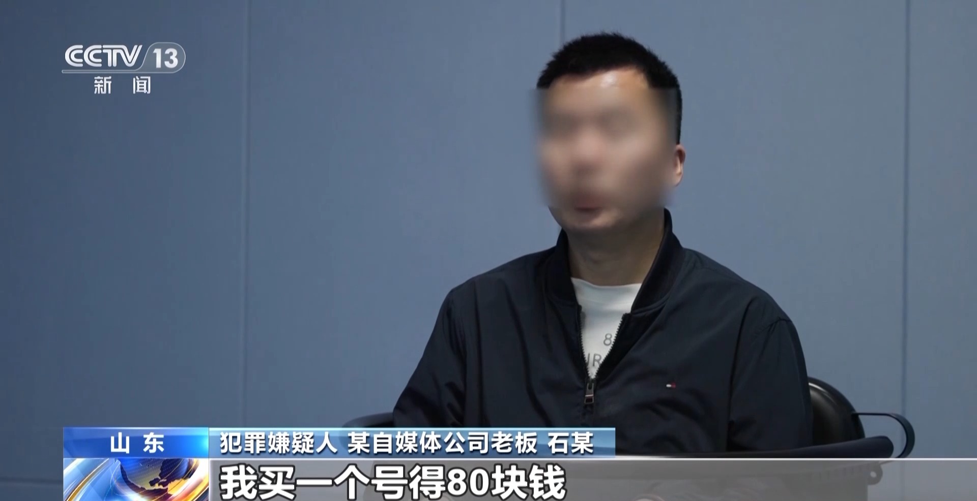犯罪嫌疑人、某自媒体公司老板 石某:我买一个号得80块钱,比如说100个,我给他8000块钱。